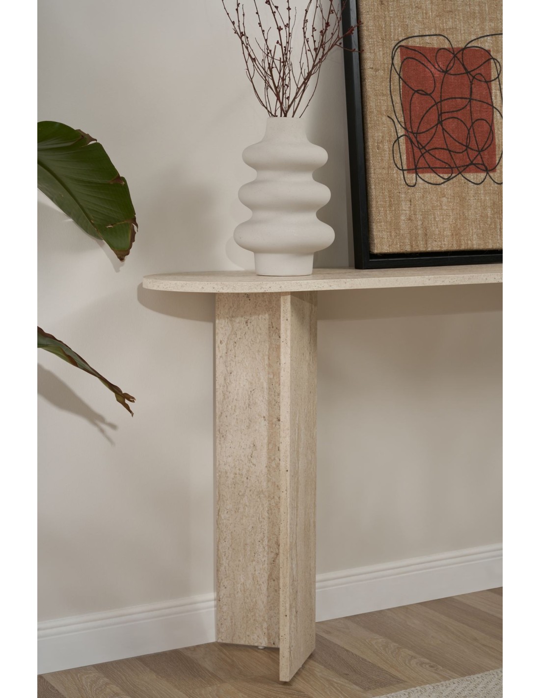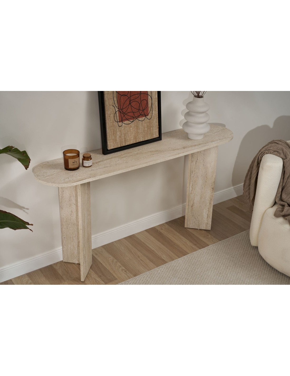 No pierdas la oportunidad de añadir esta hermosa consola a tu hogar. La combinación perfecta entre estilo y funcionalidad, la convirtien en una pieza imprescindible para cualquier hogar moderno. ¡Mejora tu espacio con la exquisita consola Lana en acabado travertino hoy mismo!
