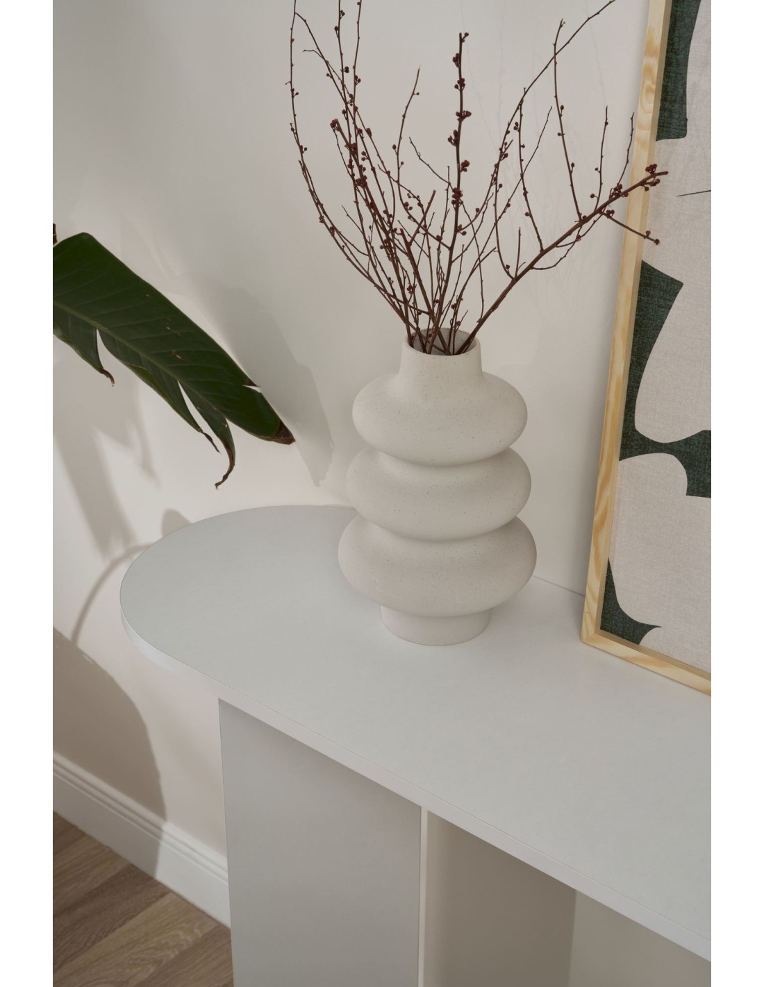 Su elegante diseño elevará instantáneamente el ambiente de cualquier estancia de tu hogar. Su rico acabado blanco añadirá sofisticación y profundidad, mientras que sus líneas limpias y silueta moderna darán un toque contemporáneo al espacio decorativo.