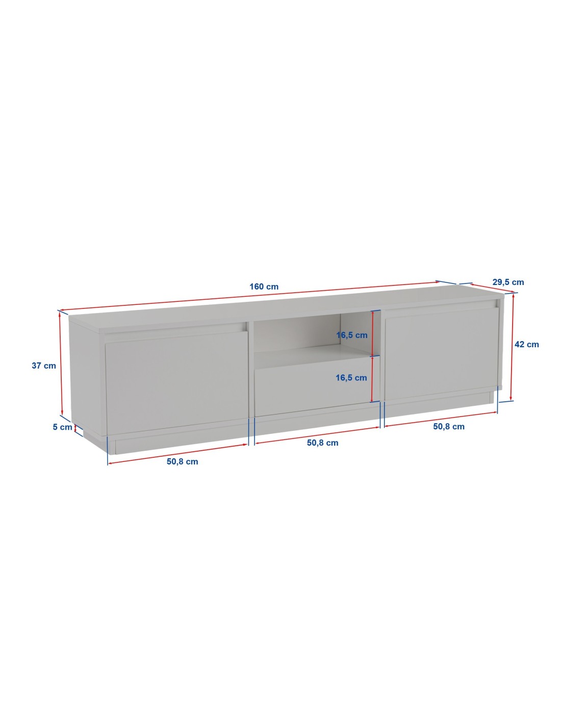 Fabricado 100% en tablero de partículas recubierto de melamina, este mueble de TV no sólo es resistente y duradero, sino también fácil de limpiar y mantener. El espesor de 18 mm garantiza la estabilidad y robustez, por lo que puedes confiar en que tu televisor y otros aparatos electrónicos están seguros y protegidos.