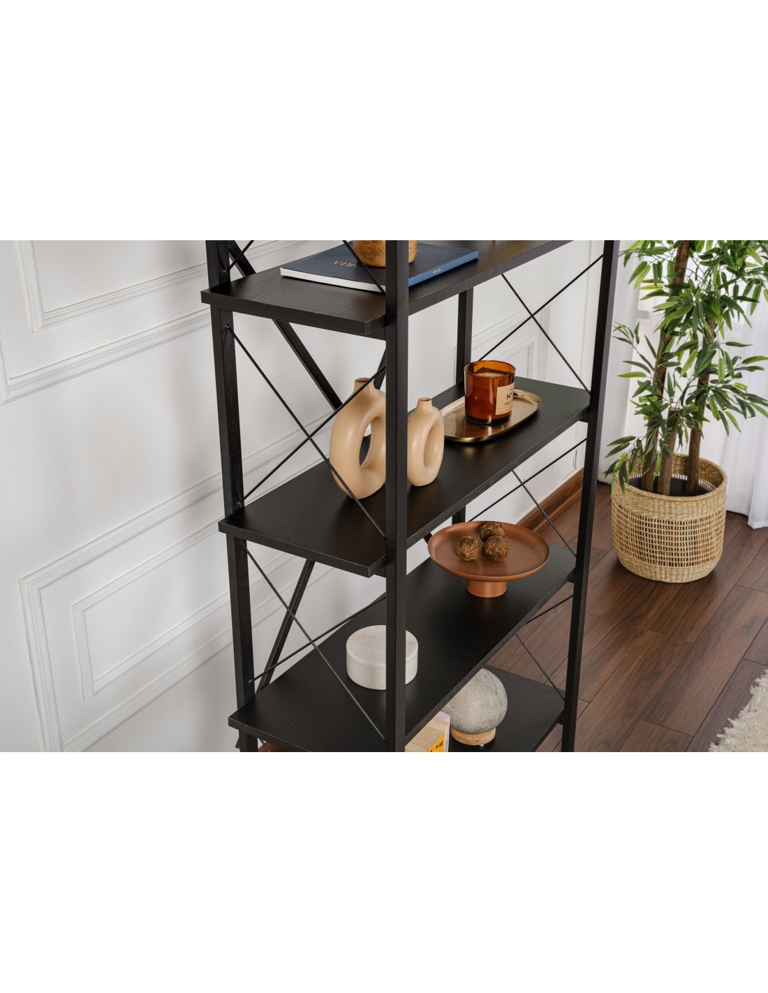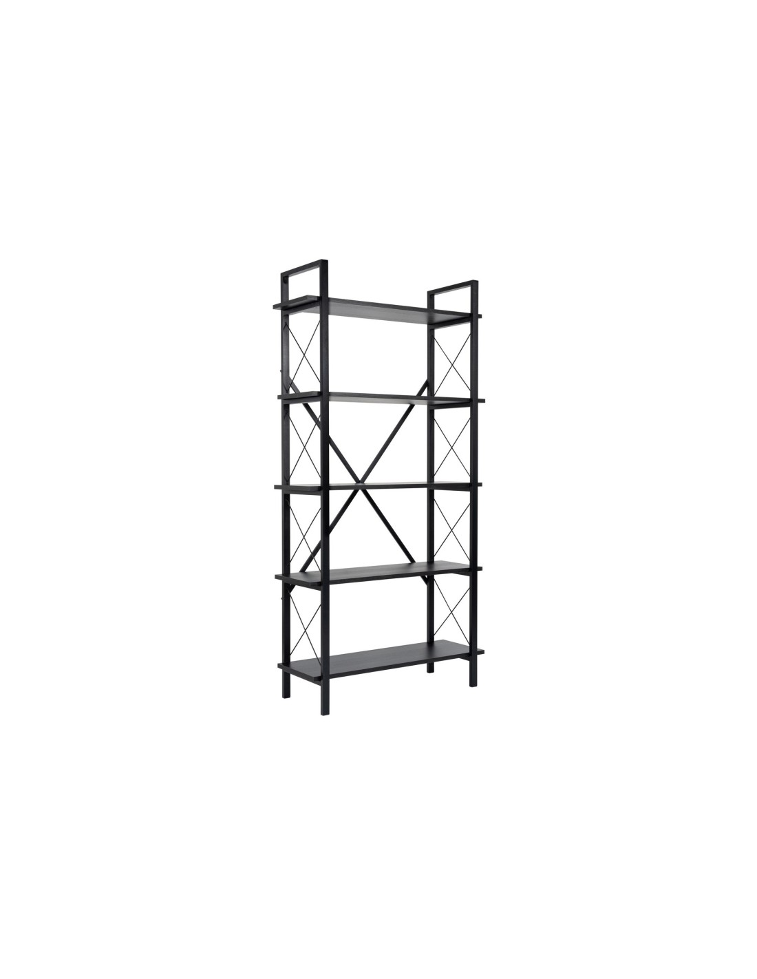 Estantería OBELISK 180x90 cm, MDF Acabado Madera Negra / Metal Negro