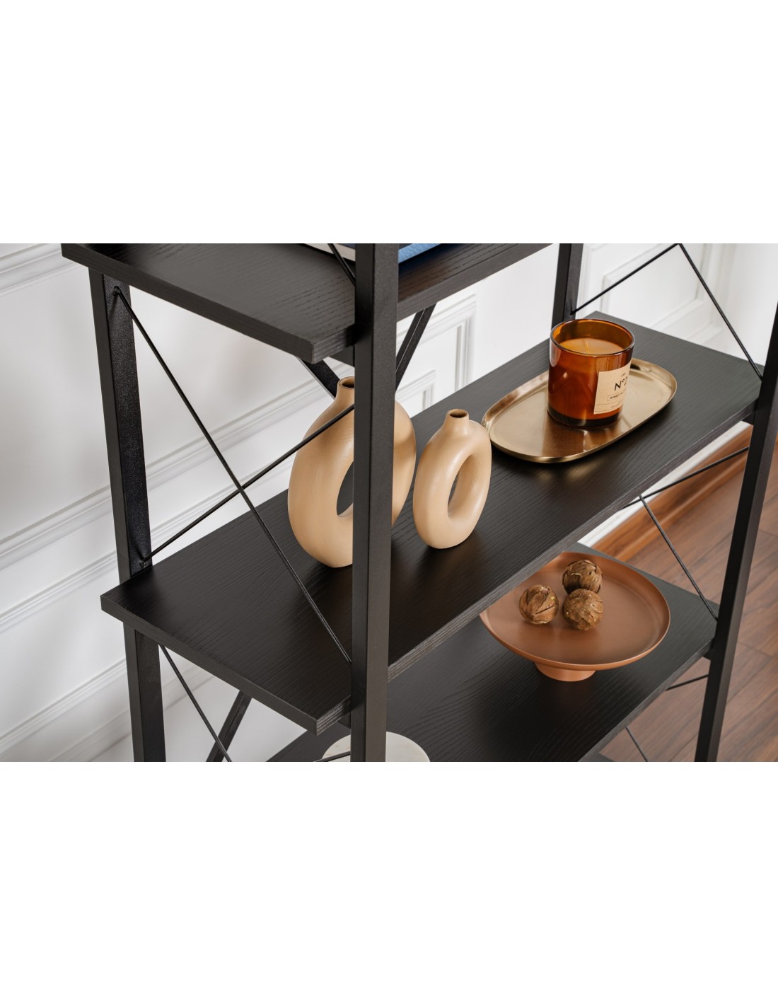 Elaborada con precisión y atención al detalle, esta estantería cuenta con pintura horneada electrostática en las partes metálicas. Los numerosos estantes ofrecen un amplio espacio de almacenamiento para todos tus libros favoritos, artículos de decoración y más.