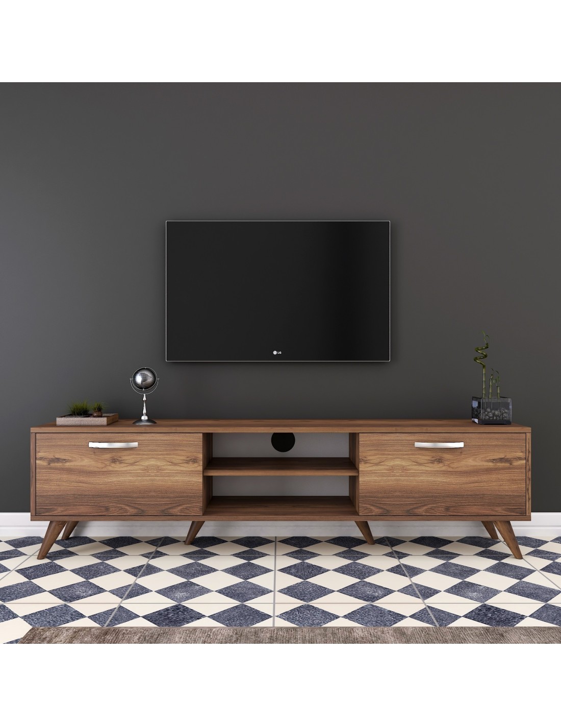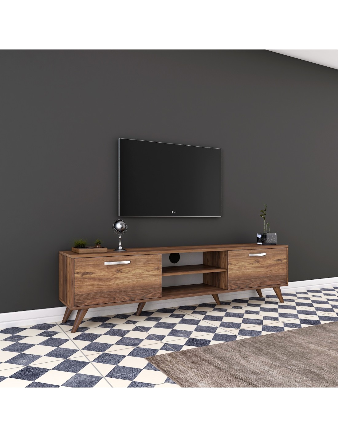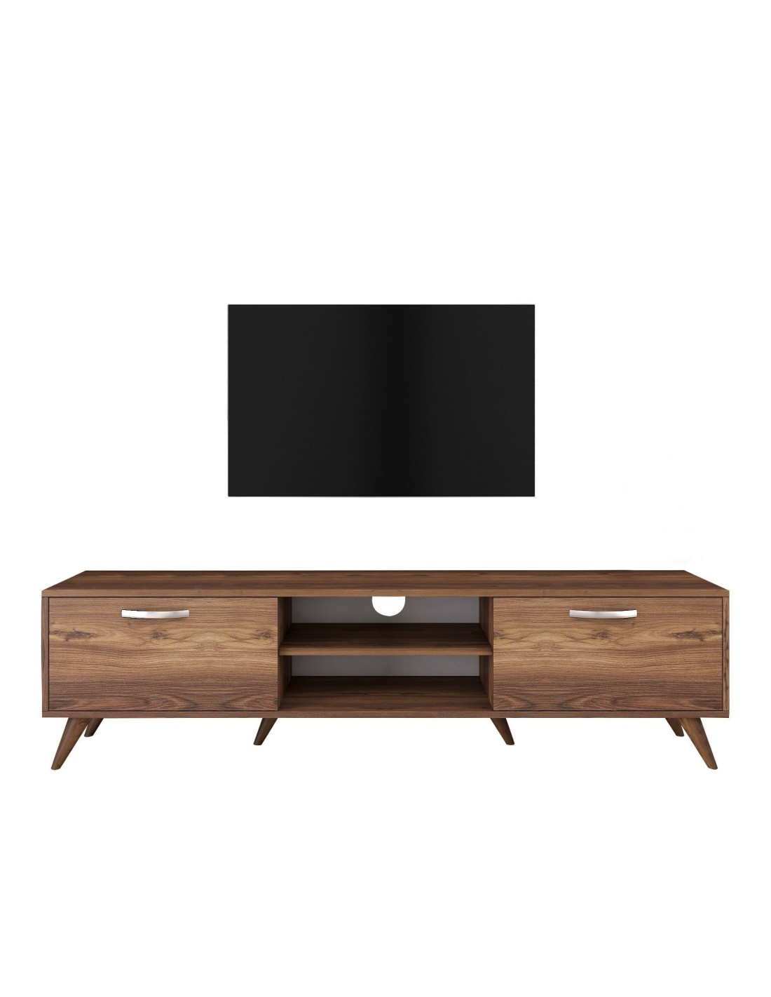 Su elegante acabado nogal, combina sin esfuerzo con cualquier estilo decorativo. Actualiza el ambiente de tu hogar hoy mismo con este elegante y funcional mueble de TV. Experimenta la alegría de un centro de entretenimiento libre de desorden y eleva tu experiencia visual.