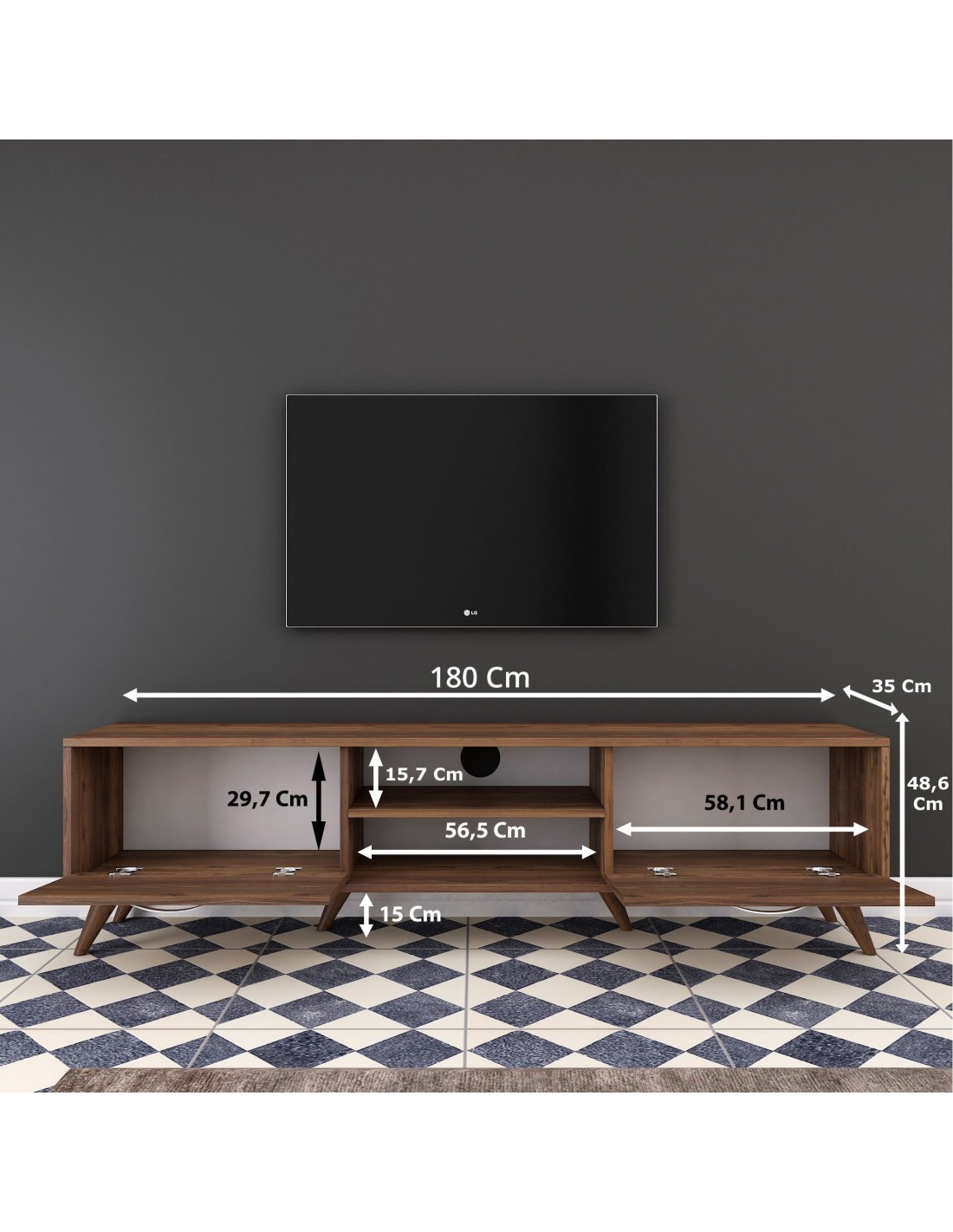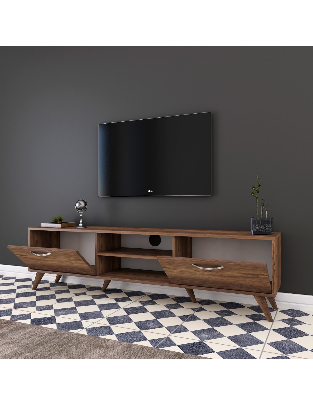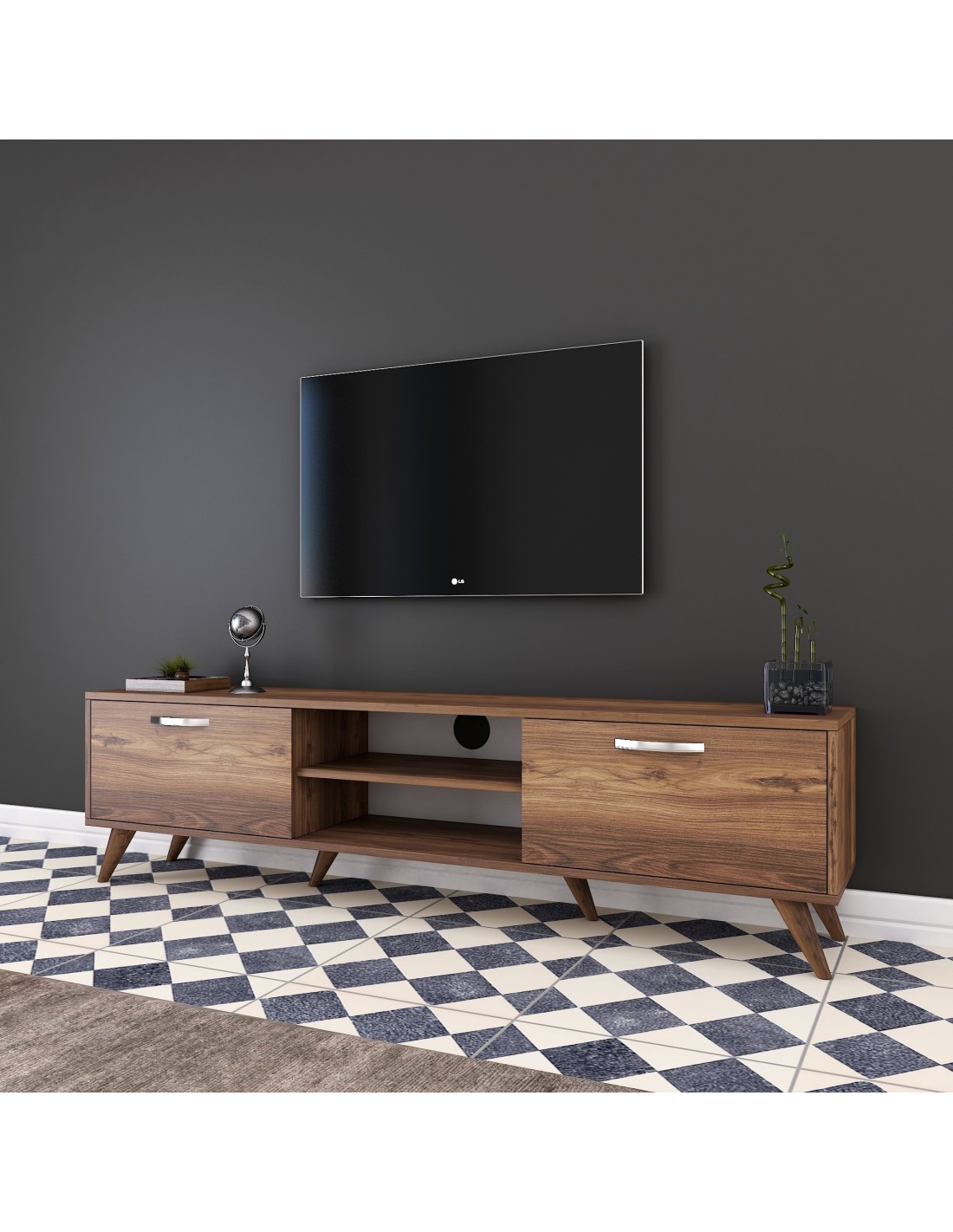 Su elegante acabado nogal, combina sin esfuerzo con cualquier estilo decorativo. Actualiza el ambiente de tu hogar hoy mismo con este elegante y funcional mueble de TV. Experimenta la alegría de un centro de entretenimiento libre de desorden y eleva tu experiencia visual.