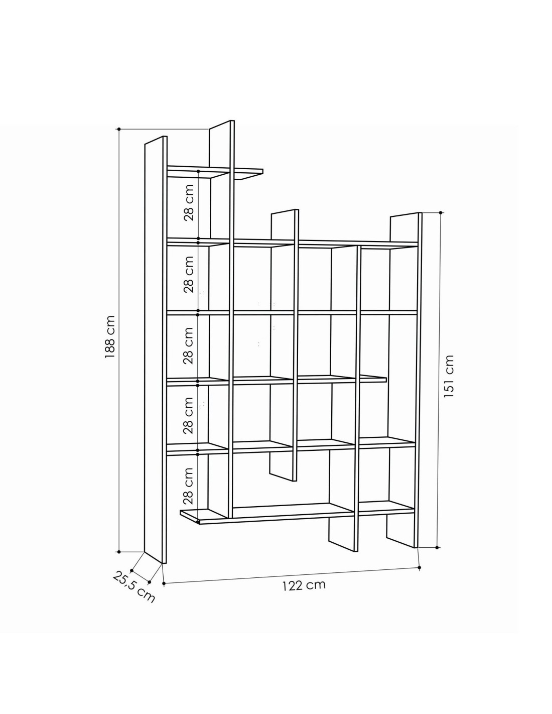 Estantería GITTER 188x122 cm, MDF Acabado Roble