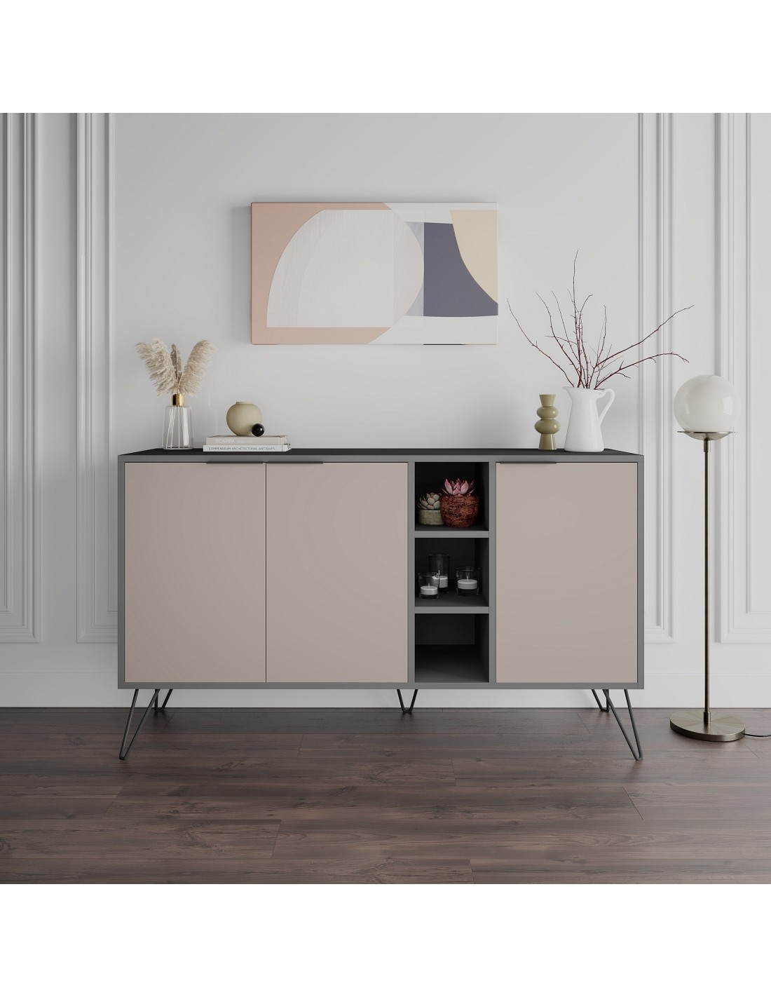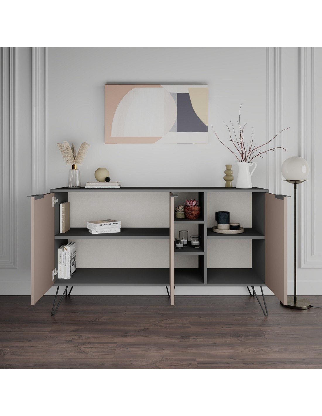 Aparador RITA, MDF Acabado Antracita / Marrón Claro