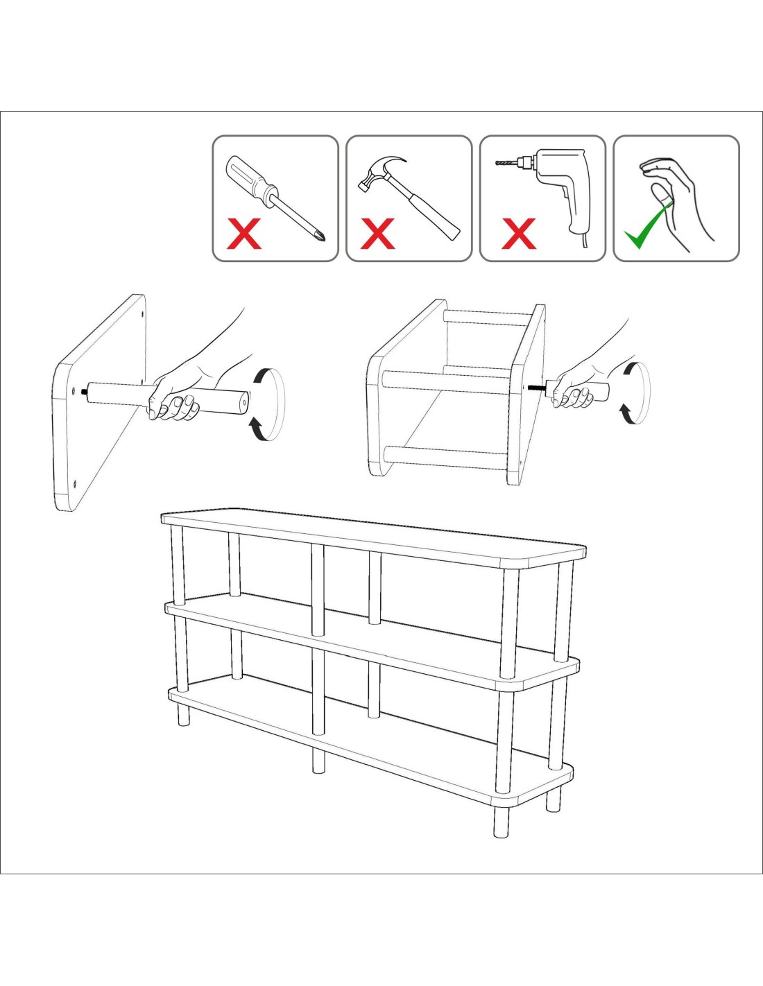 No se requieren herramientas para el montaje, lo que ofrece un proceso sin complicaciones. La capacidad de carga de 25 kg por cada estante asegura que puedas almacenar de manera segura todos tus libros y artículos decorativos sin preocupaciones.