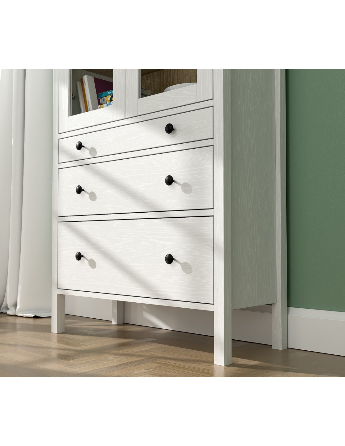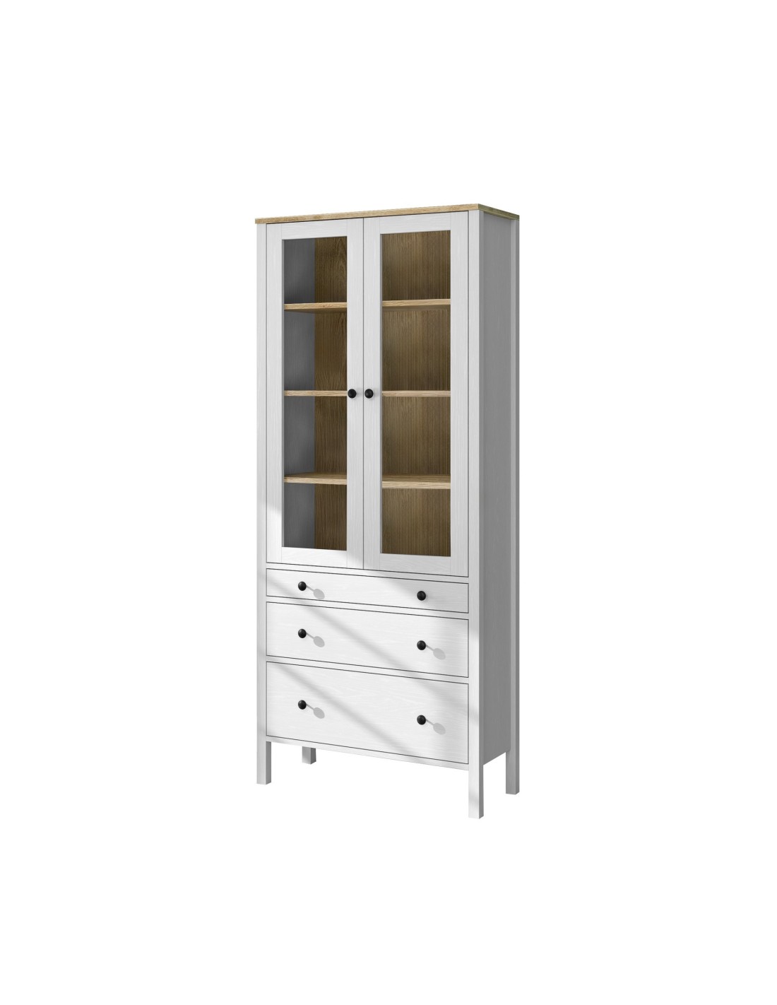 Vitrina Aparador con 3 Cajones VISE 194x83 cm, MDF Acabado Blanco