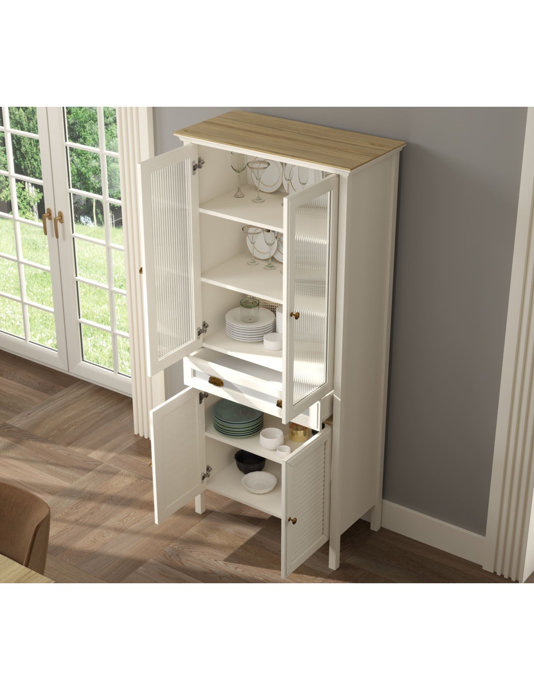 Gracias a su diseño elegante y acabado en madera blanca, esta vitrina elevará al instante el aspecto de cualquier estancia con un toque de calidez y luminosidad, convirtiéndola en la adición perfecta a cualquier espacio decorativo.