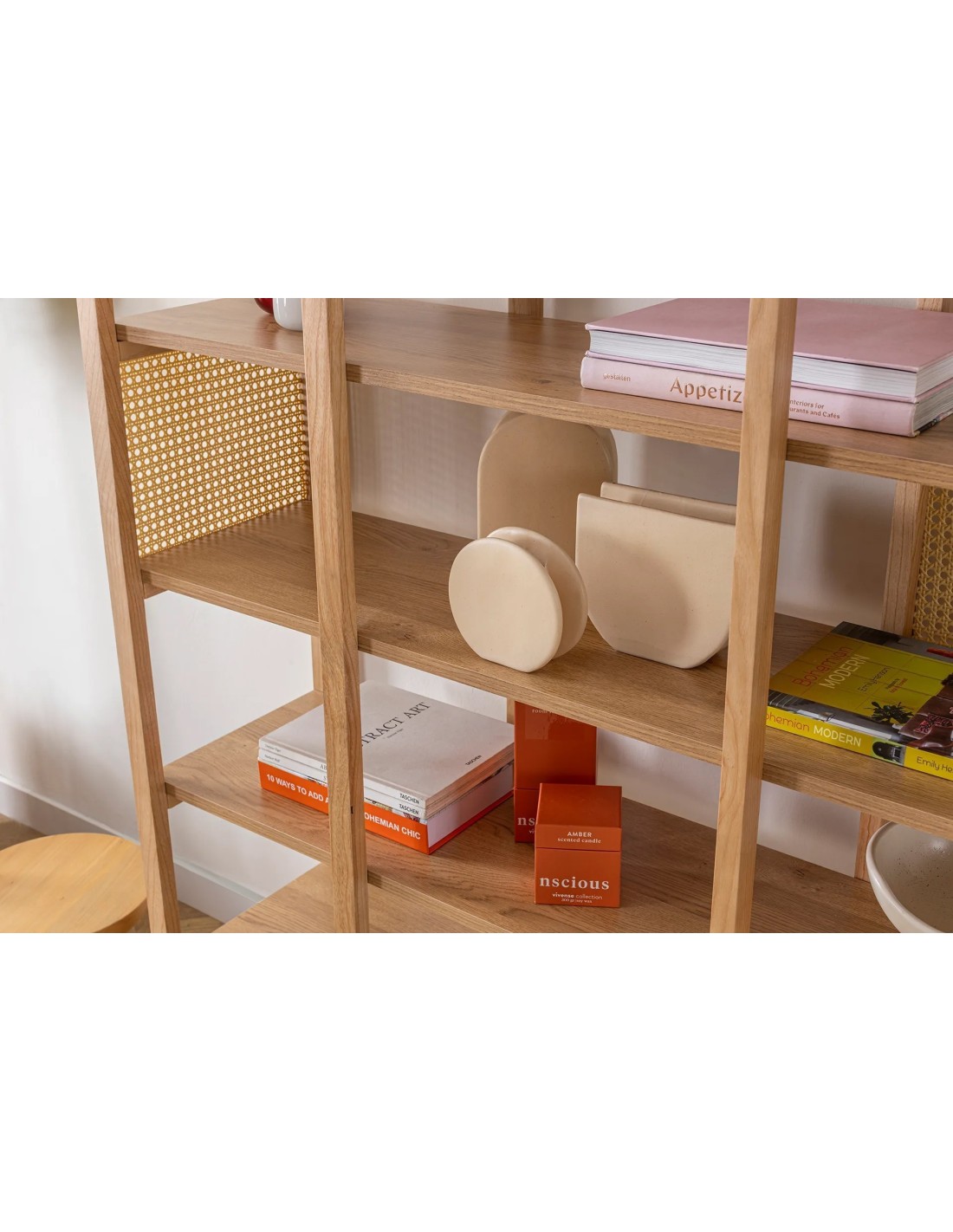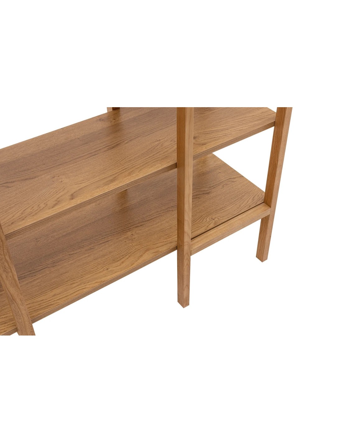 Sus estantes fabricados 100% en aglomerado recubierto de melamina garantizan resistencia y una belleza longeva, mientras que el acabado natural añadirá un toque de calidez y sofisticación a cualquier estancia, encajando perfectamente tanto en interiores modernos como tradicionales.