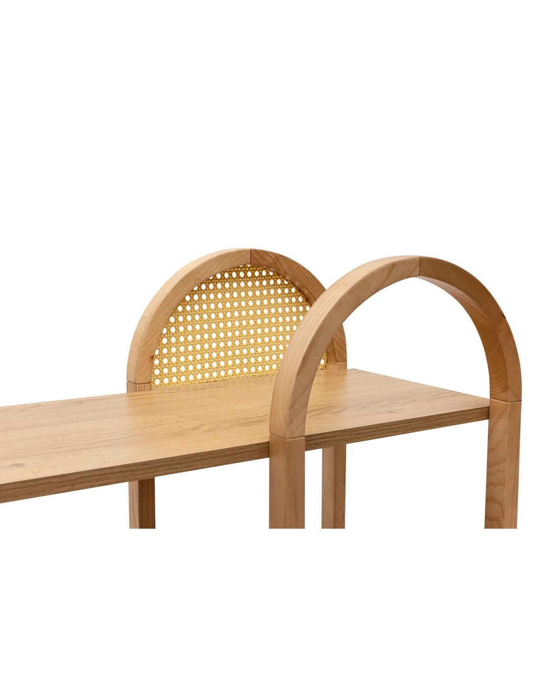 Con estructura de madera de fresno, esta pieza emana un encanto atemporal que complementará sin esfuerzo cualquier estilo decorativo. Su diseño de dimensiones generosas proporciona suficiente espacio de almacenaje para todos tus elementos esenciales, ayudando a mantener tus pertenencias organizadas y al alcance de la mano. Los amplios estantes le te permitirán exponer tus piezas decorativas favoritas, añadiendo un toque personal al espacio.