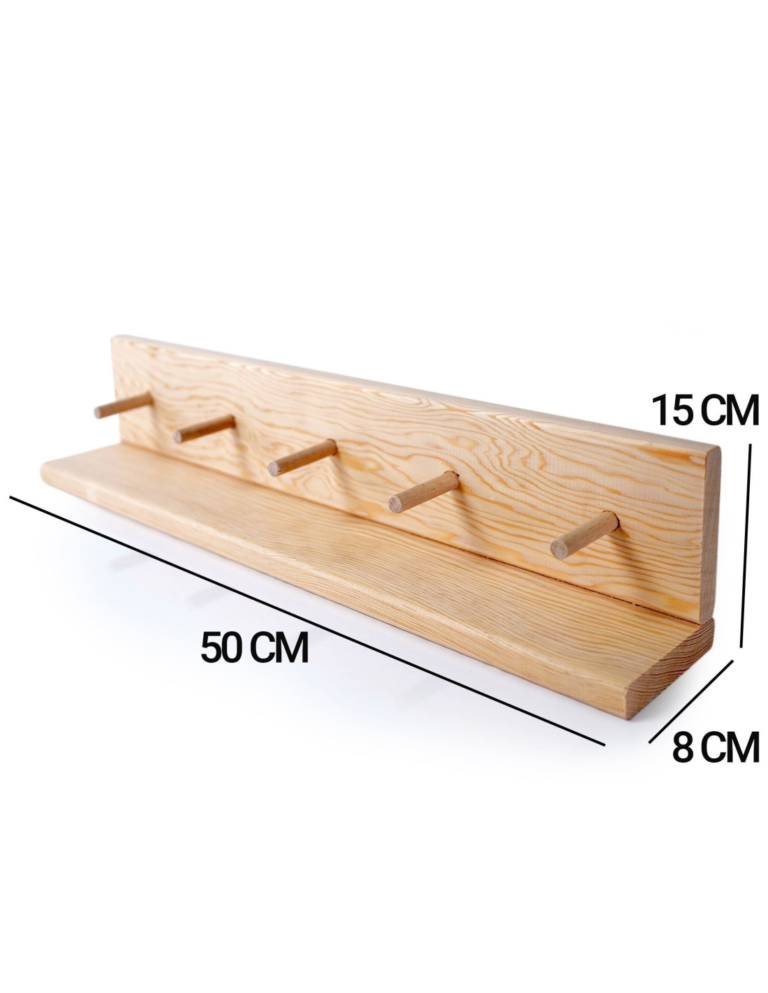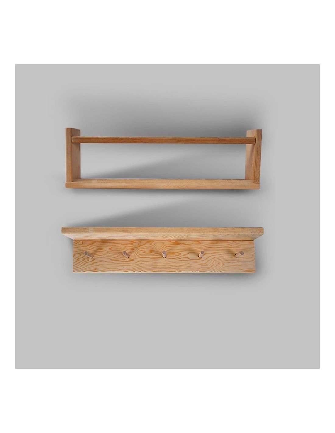 Set 2 Estanterías de Pared EIRA 50x15 cm, Pino Macizo Acabado Roble