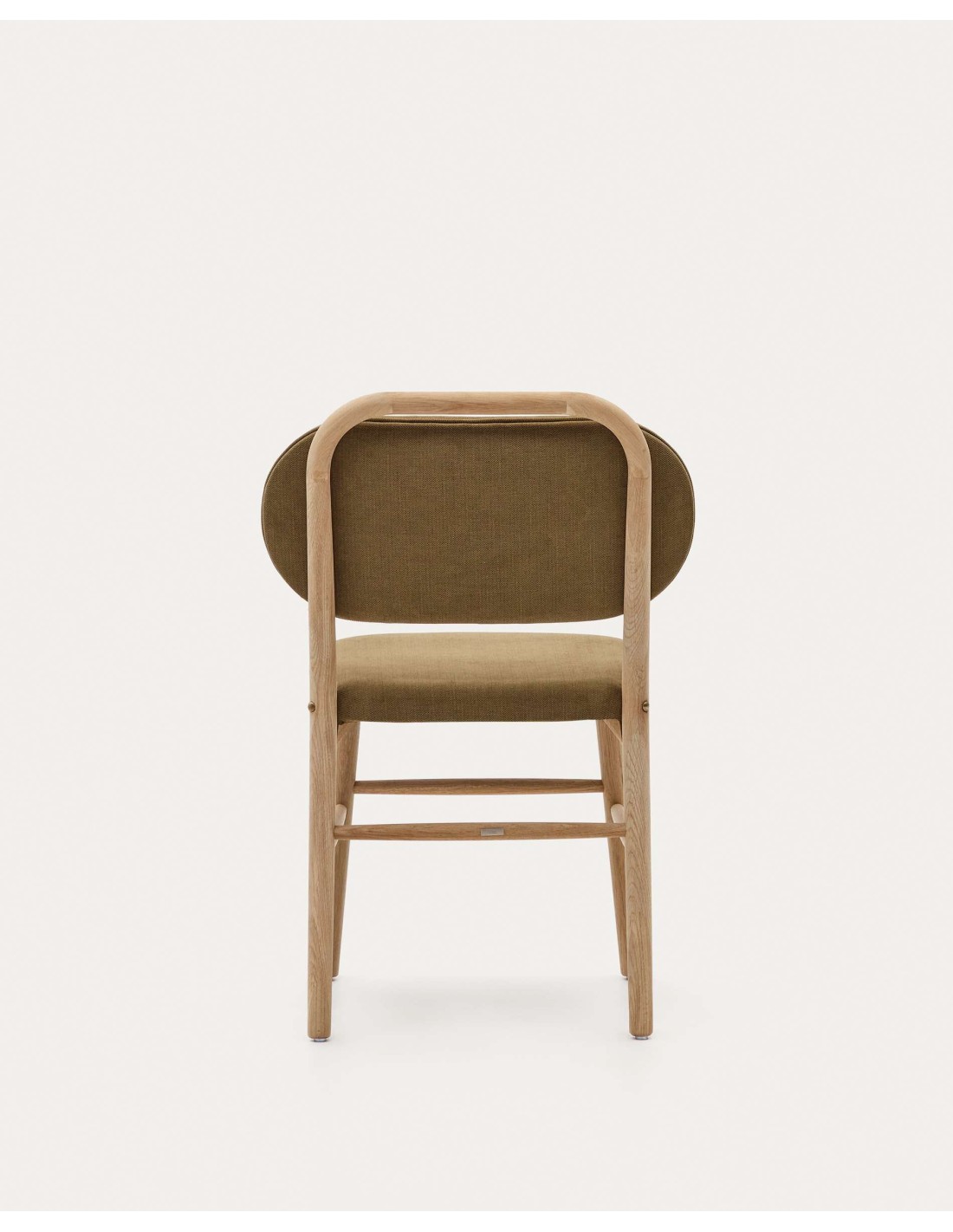 Silla Helda chenilla verde, madera maciza de roble - Kave Home.