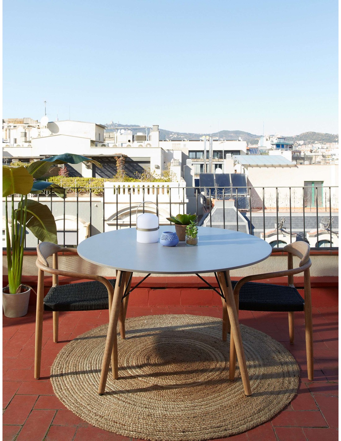 Las sillas de la colección Nina, son piezas de diseño exclusivas, ya que su estructura de madera maciza de acacia y asiento trenzado en cuerda, han sido fabricados a mano. Además, los materiales cuentan con acabados que optimizan al máximo sus cualidades. Atrévete a disfrutar de esta colección tan única, como funcional.