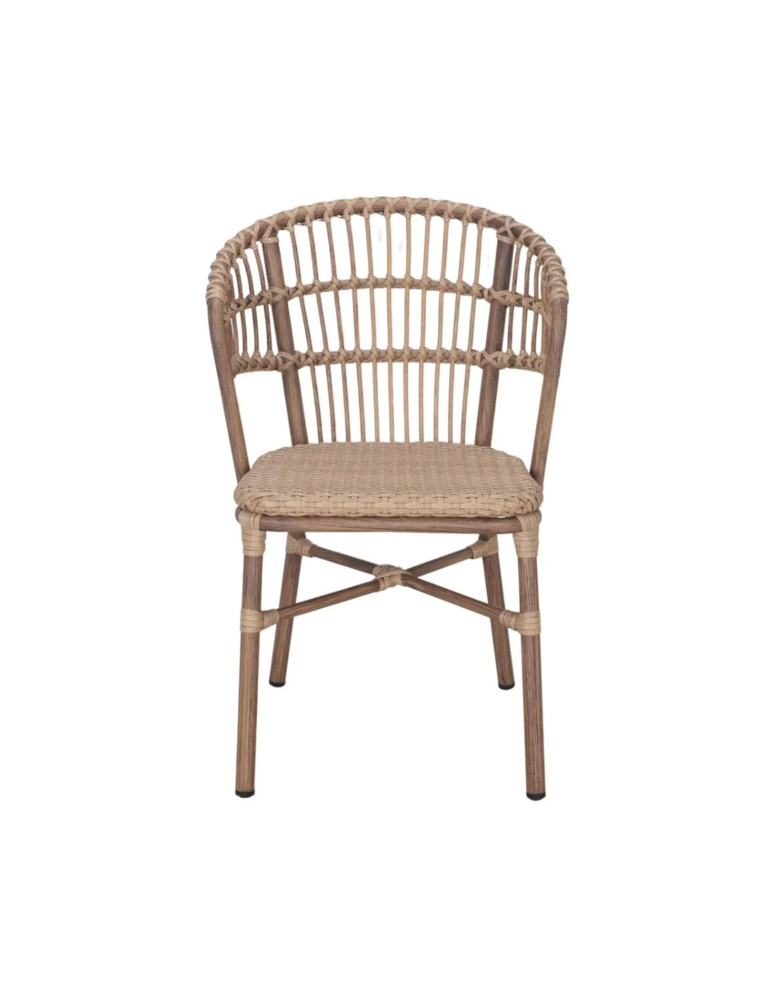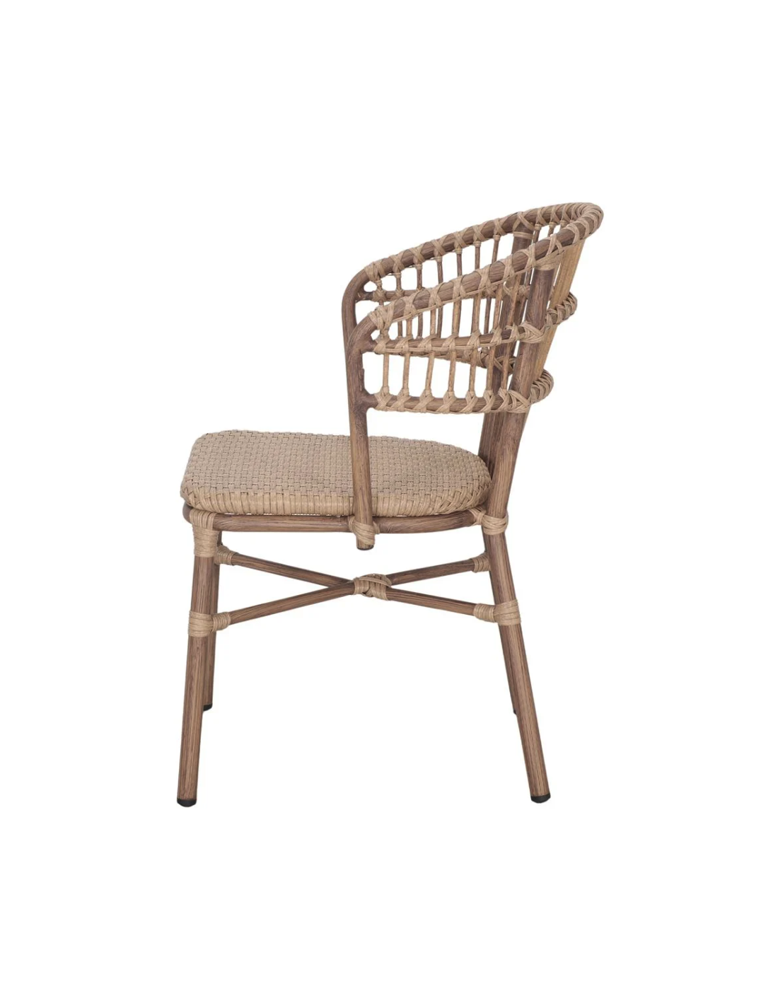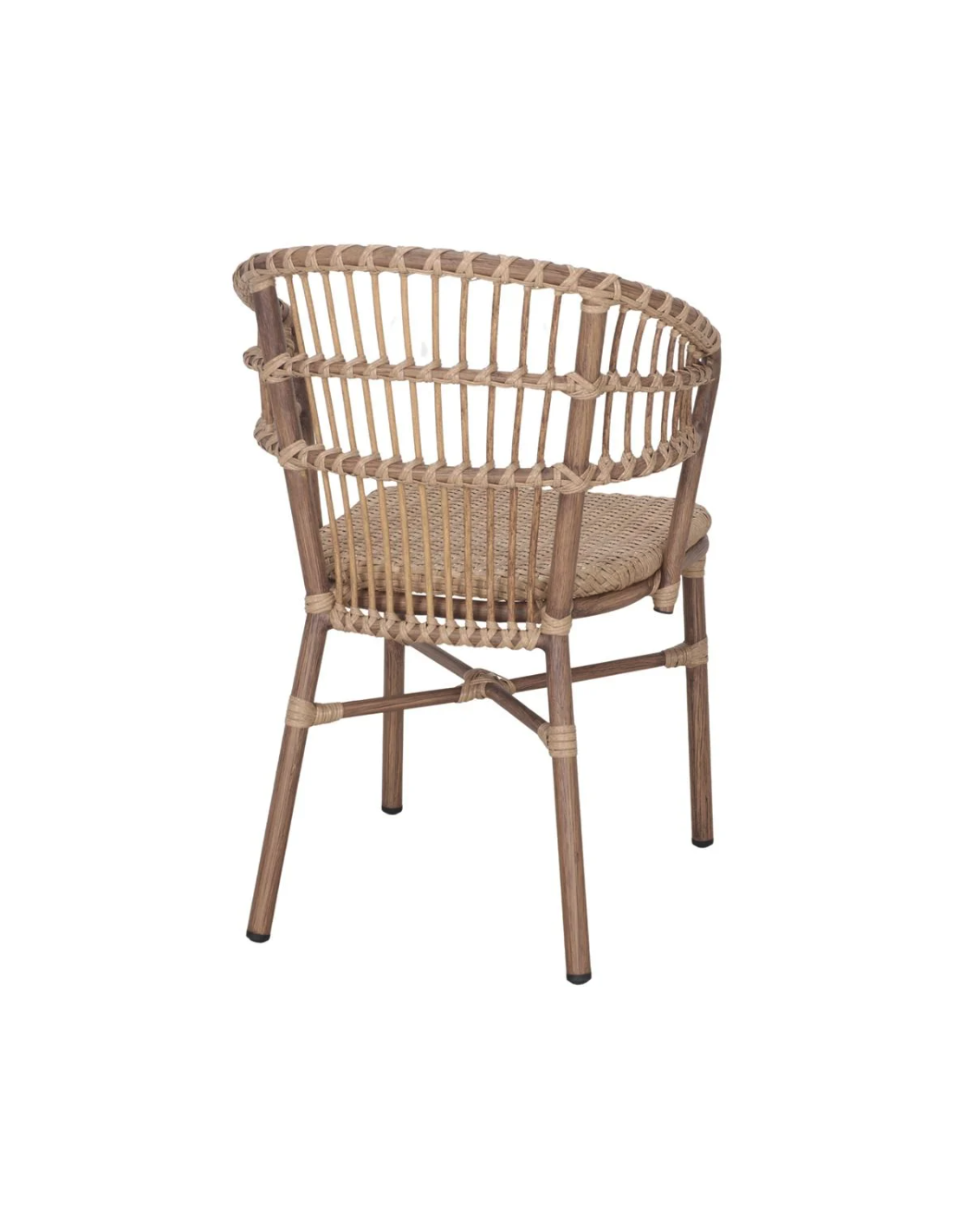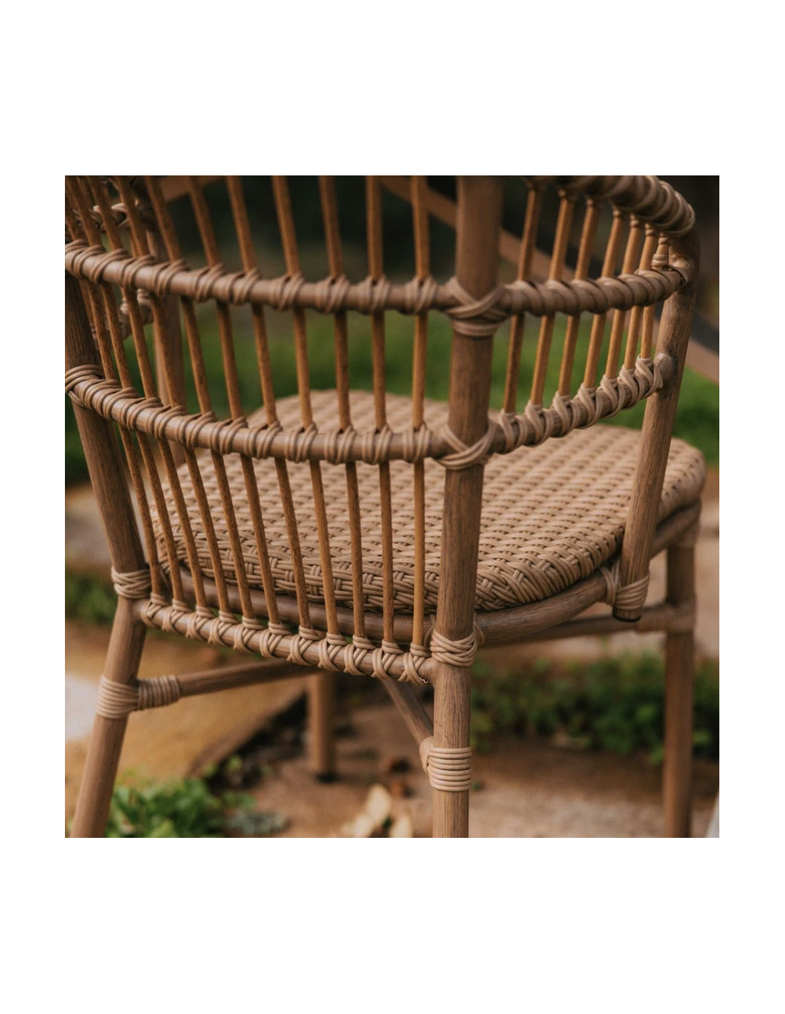 Silla con brazos estilo Bistró - Vintage, con estructura tubular en aluminio pintado efecto bambú y asiento trenzado en ratán sintético a tono con la estructura. Una pieza que destaca por su look clásico y elegante, además de su gran resistencia. Ideal para añadir un toque de distinción en exteriores como el jardín o la terraza, ya sea en el hogar en locales de hostelería y restauración. Apilable