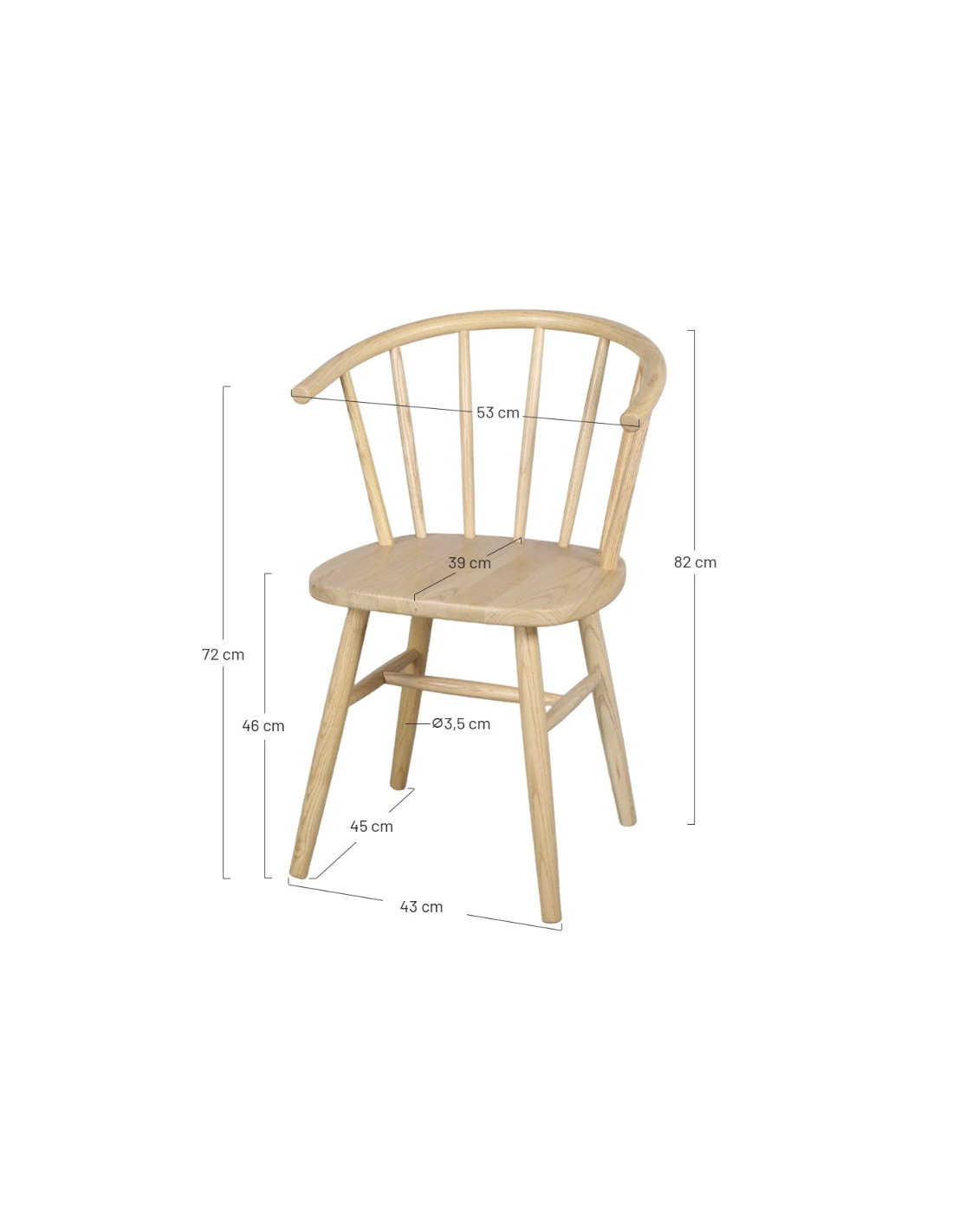 Silla de diseño inspirada en el clásico estilo 'Windsor'. Fabricada 100% en madera de olmo acabado natural.