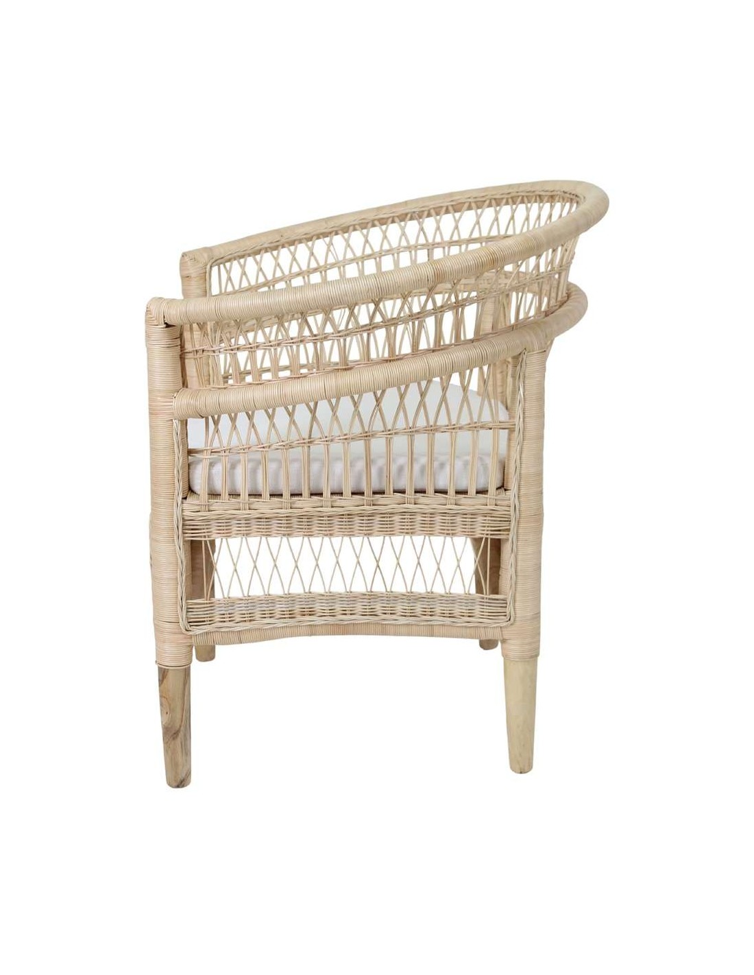 Sillón ratán con reposabrazos estilo Étnico, Exótico, Tropical. Fabricado en fibra de ratán natural con estructura de madera.