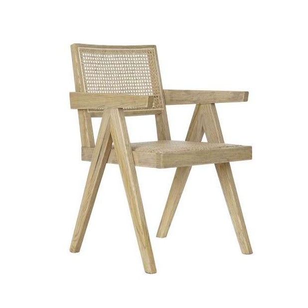 Set de 2 sillas de diseño estilo 'Racionalista', elaboradas en madera de olmo acabado natural, con asiento tapizado en ratán natural y respaldo tejido en rejilla del mismo material. Una pieza inspirada en la icónica silla diseñada por el arquitecto suizo Pierre Jeanneret para el proyecto urbanístico creado por Le Corbusier para la ciudad india de Chandigarh en 1951 (nombrada Patrimonio de la Humanidad en 2016).