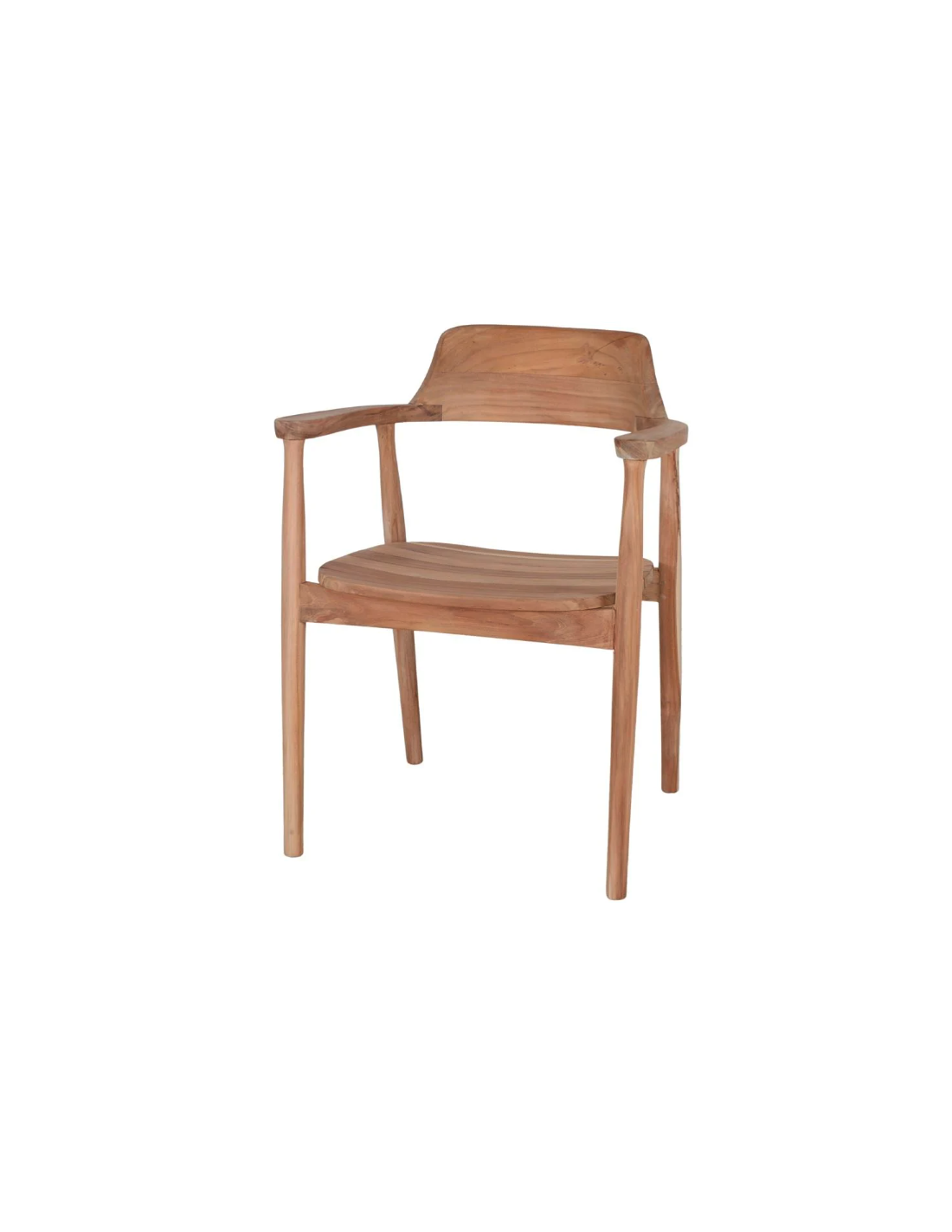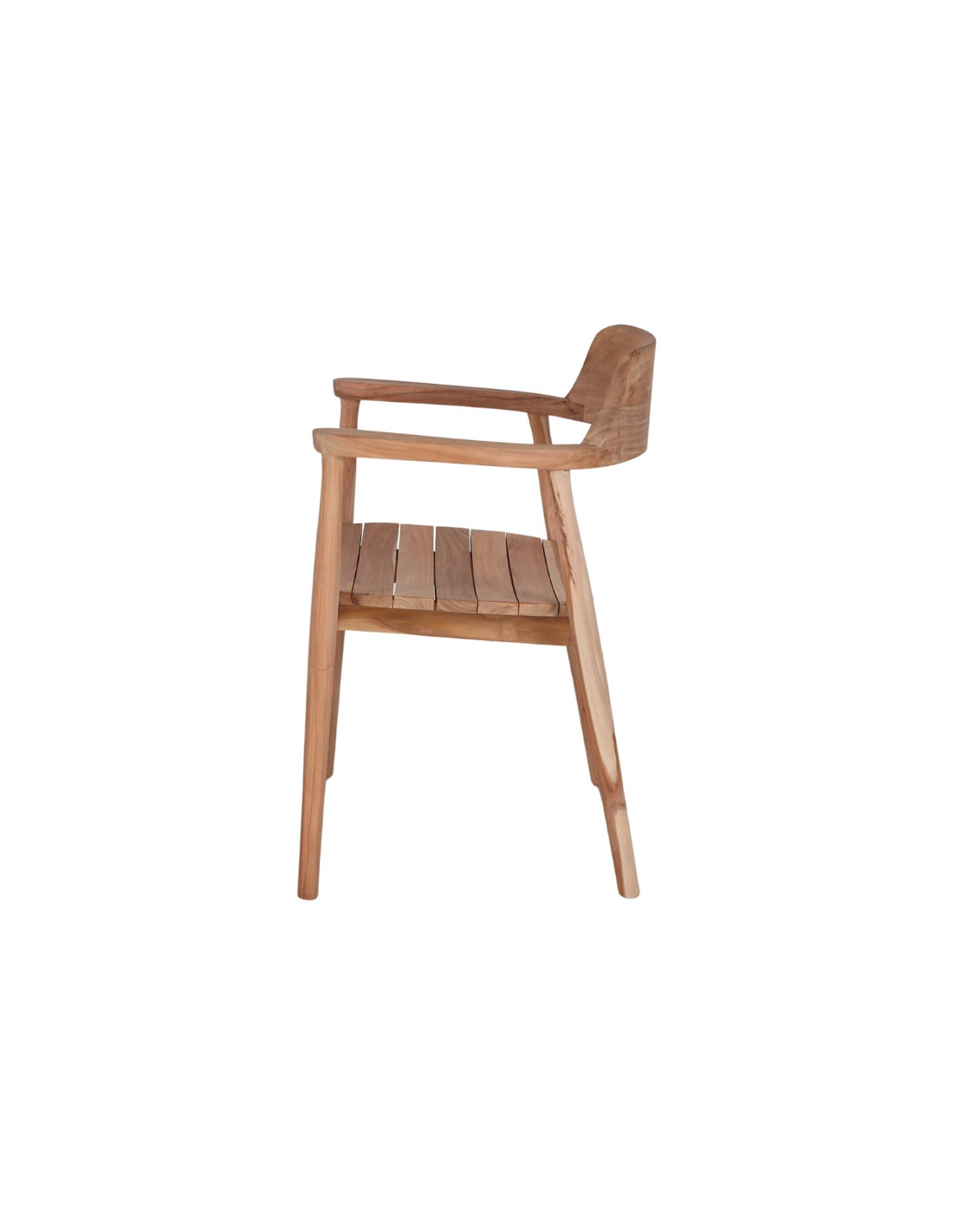 Silla con brazos estilo Contemporáneo, elaborada en su totalidad en madera maciza de teca acabado natural. Una pieza elegante y moderna, que destaca por su alta calidad y diseño ergonómico, fácilmente adaptable a cualquier ambiente de estilo contemporáneo.