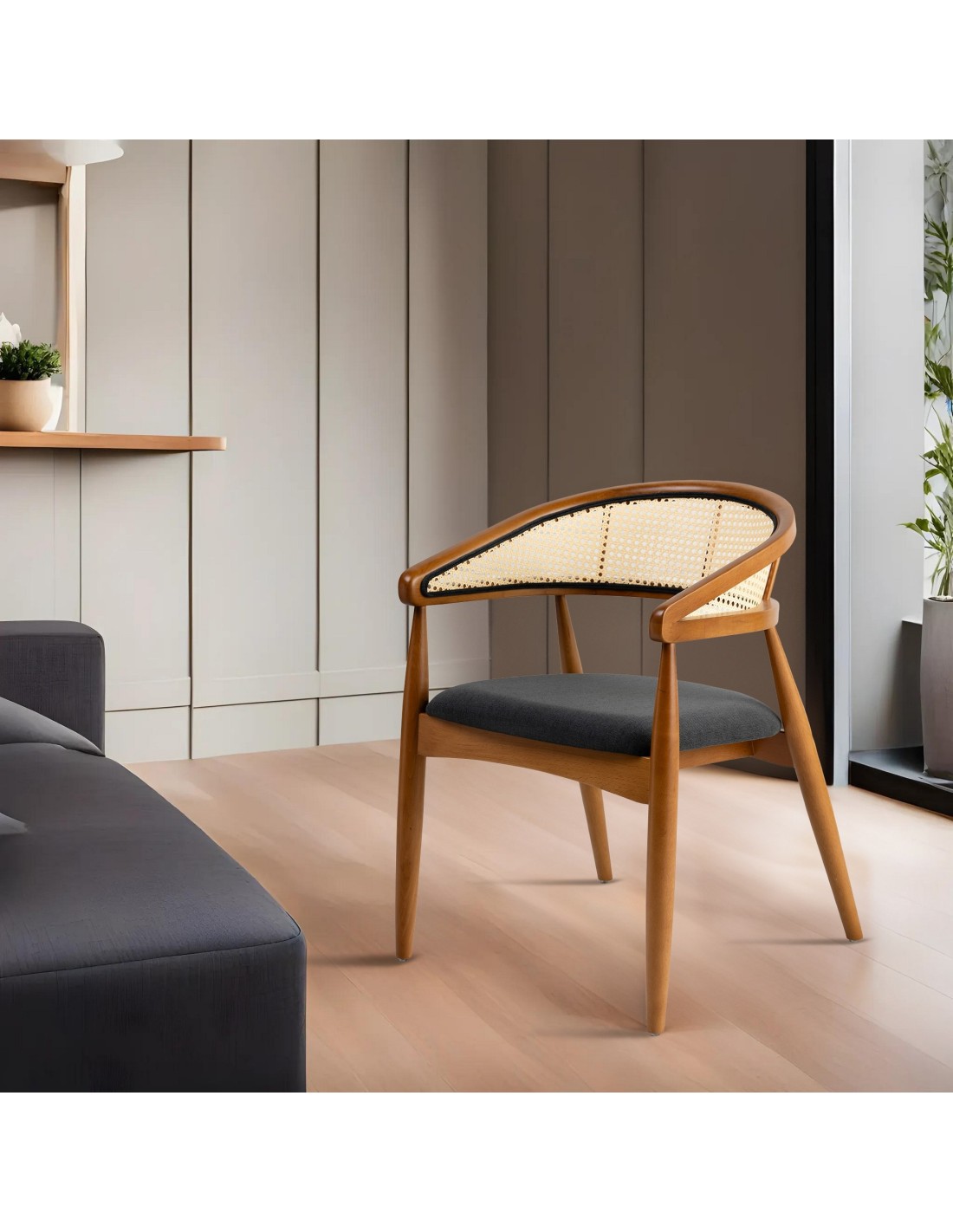 Silla con Brazos RHEA, Madera Natural / Textil Negro
