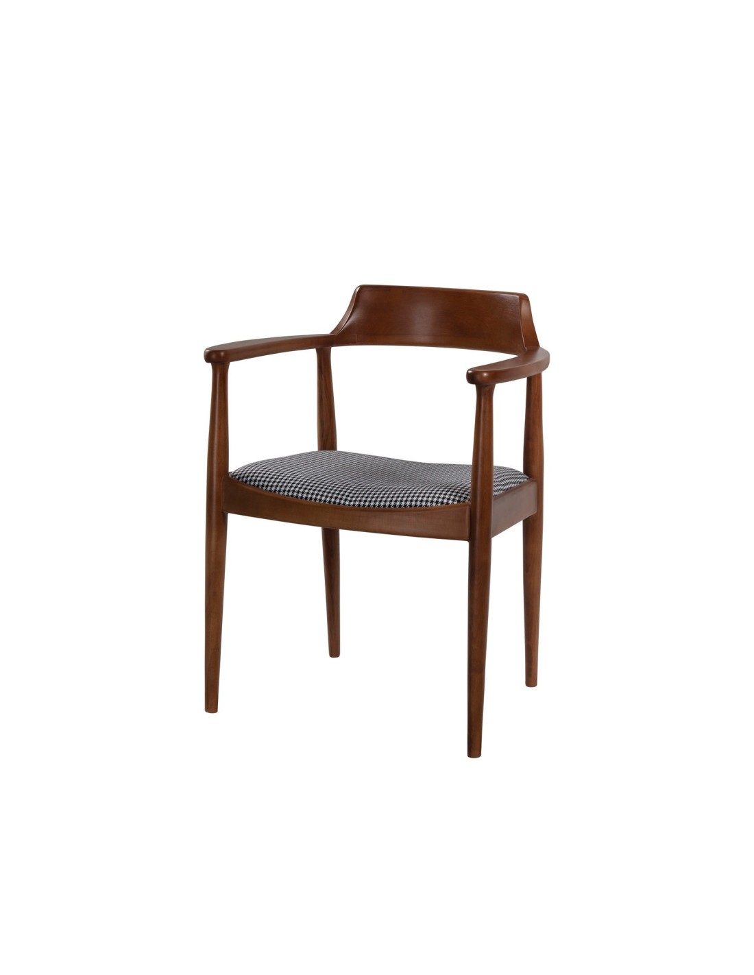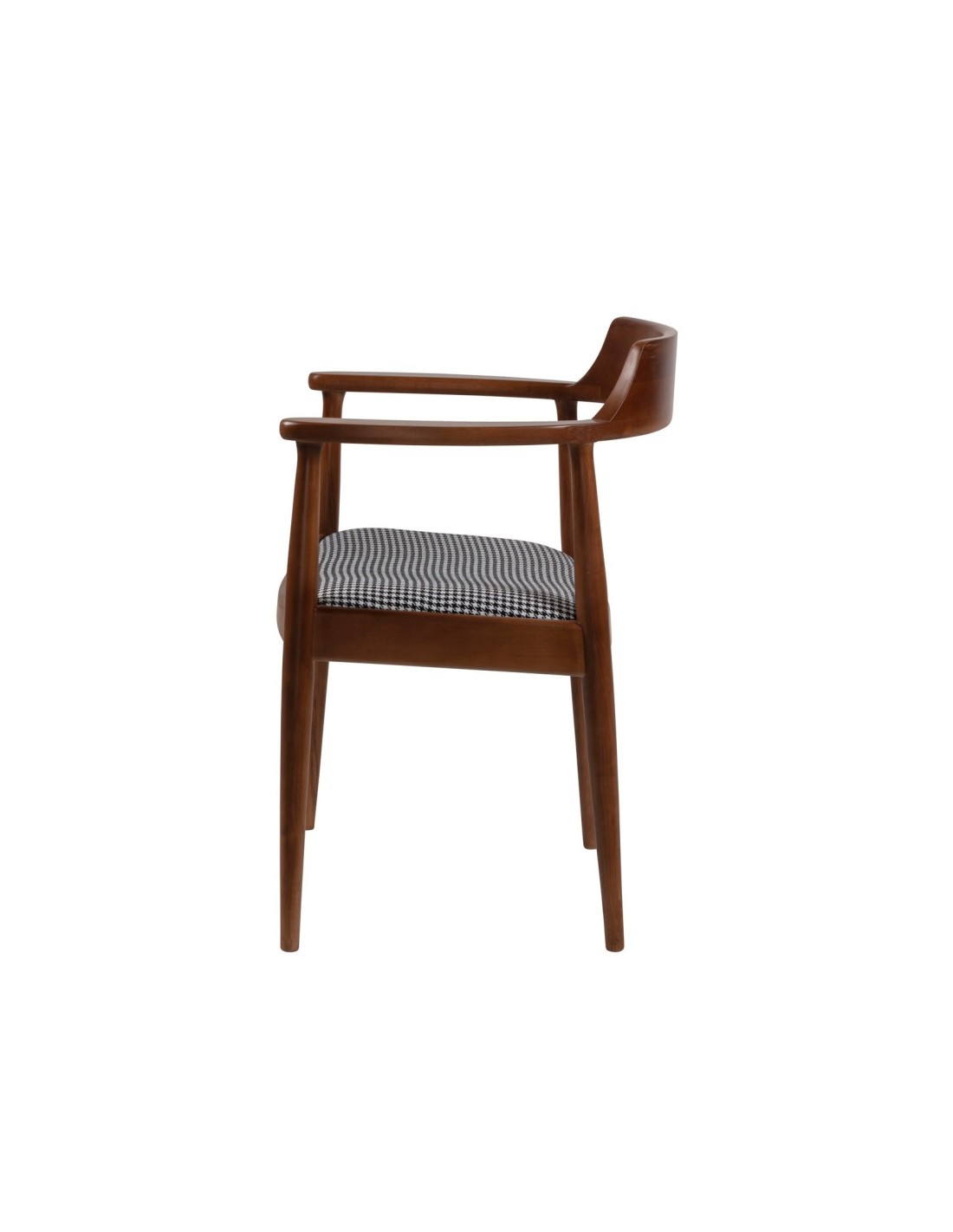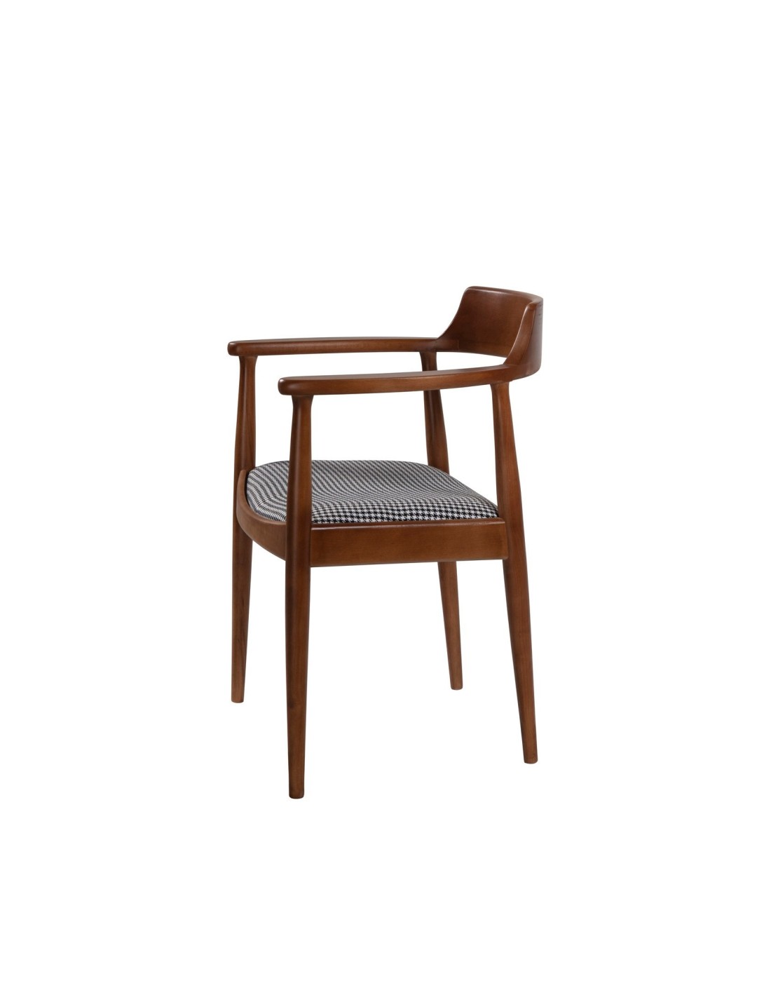 Silla con Brazos REGAL, Madera Acabado Nogal / Lino Negro / Blanco