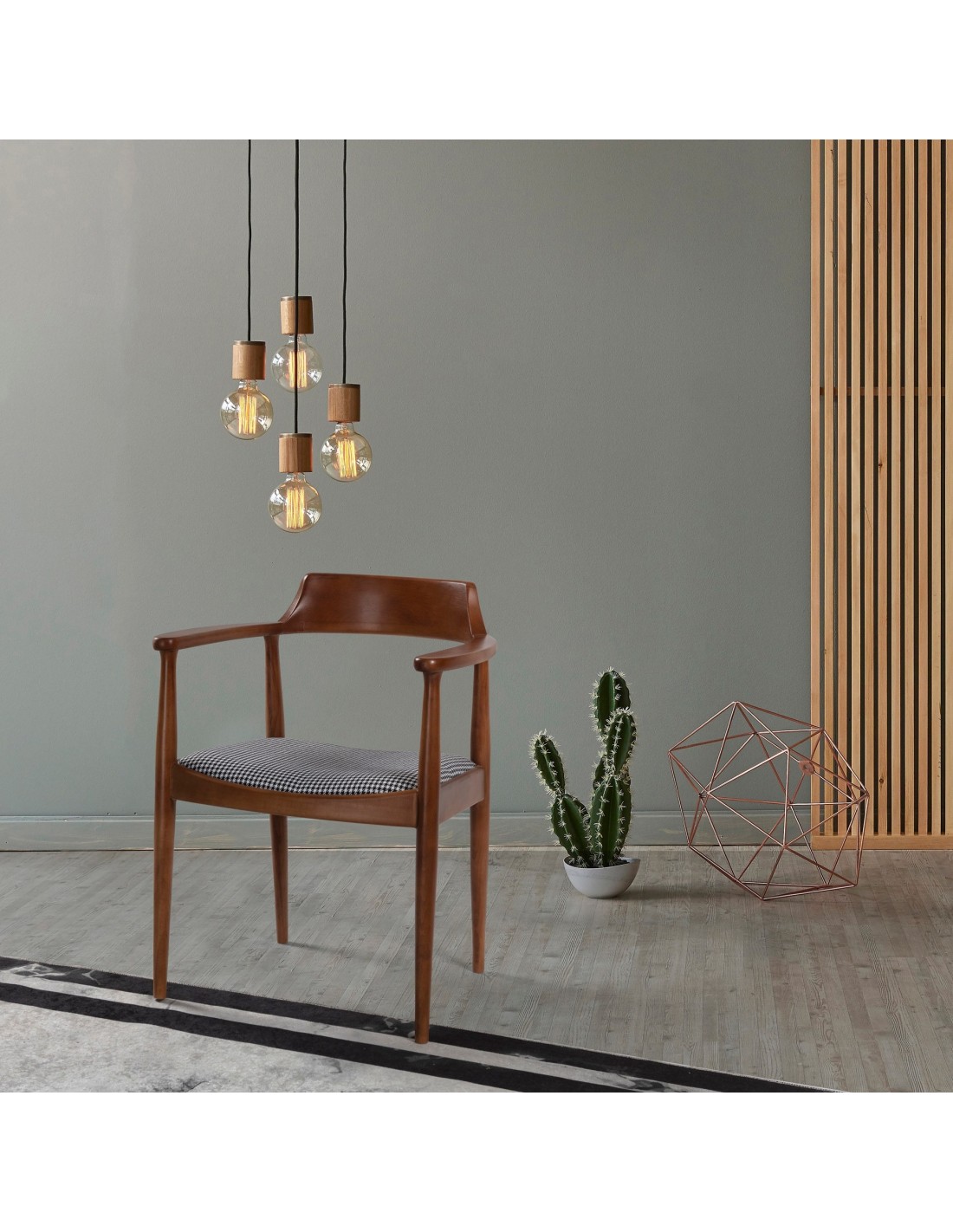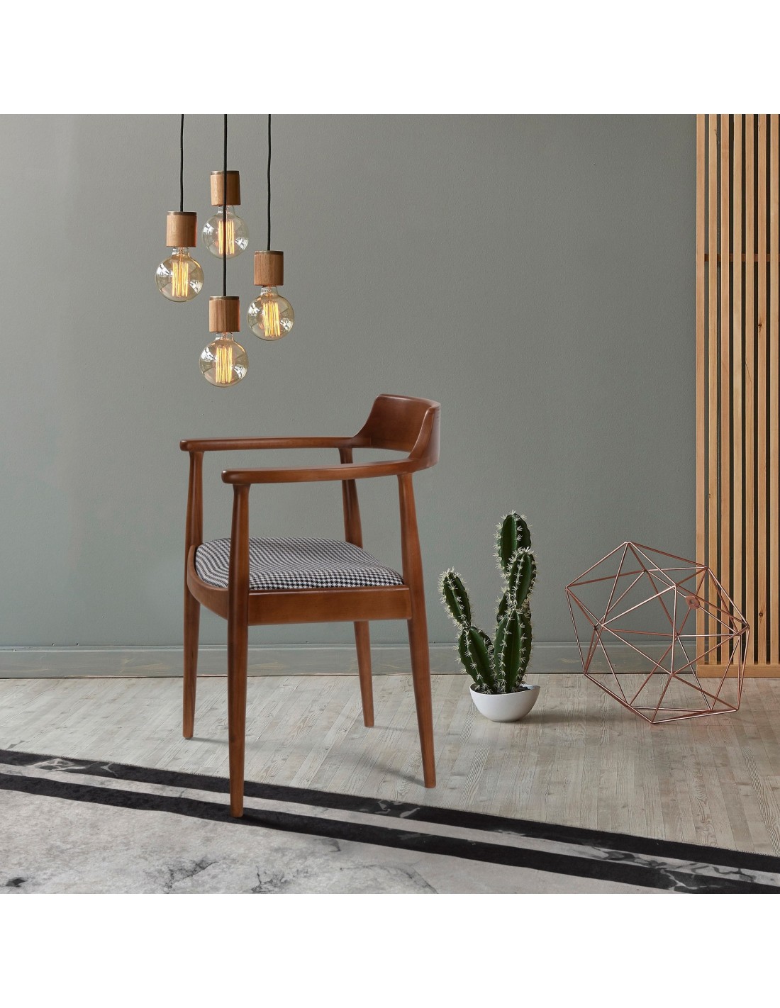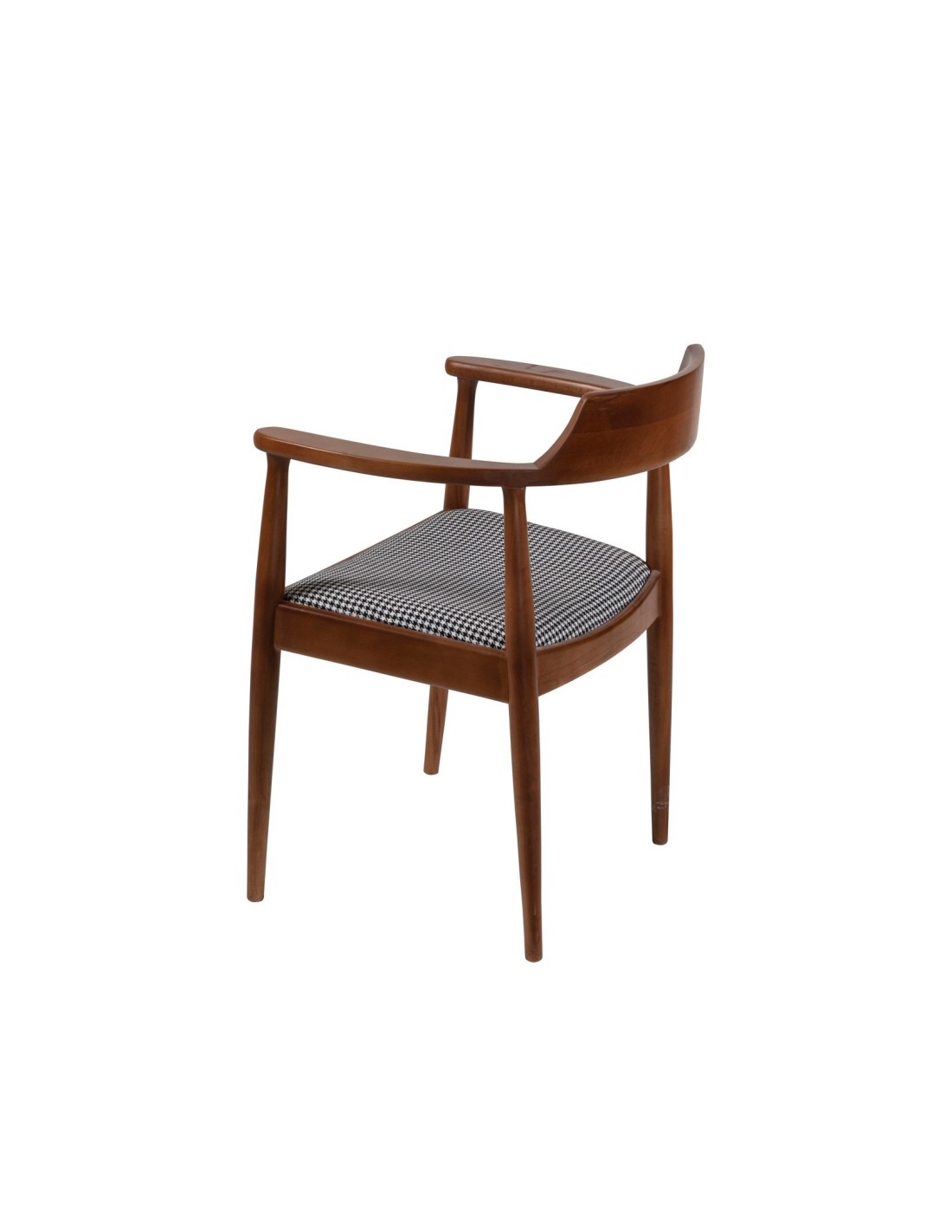 Silla con Brazos REGAL, Madera Acabado Nogal / Lino Negro / Blanco