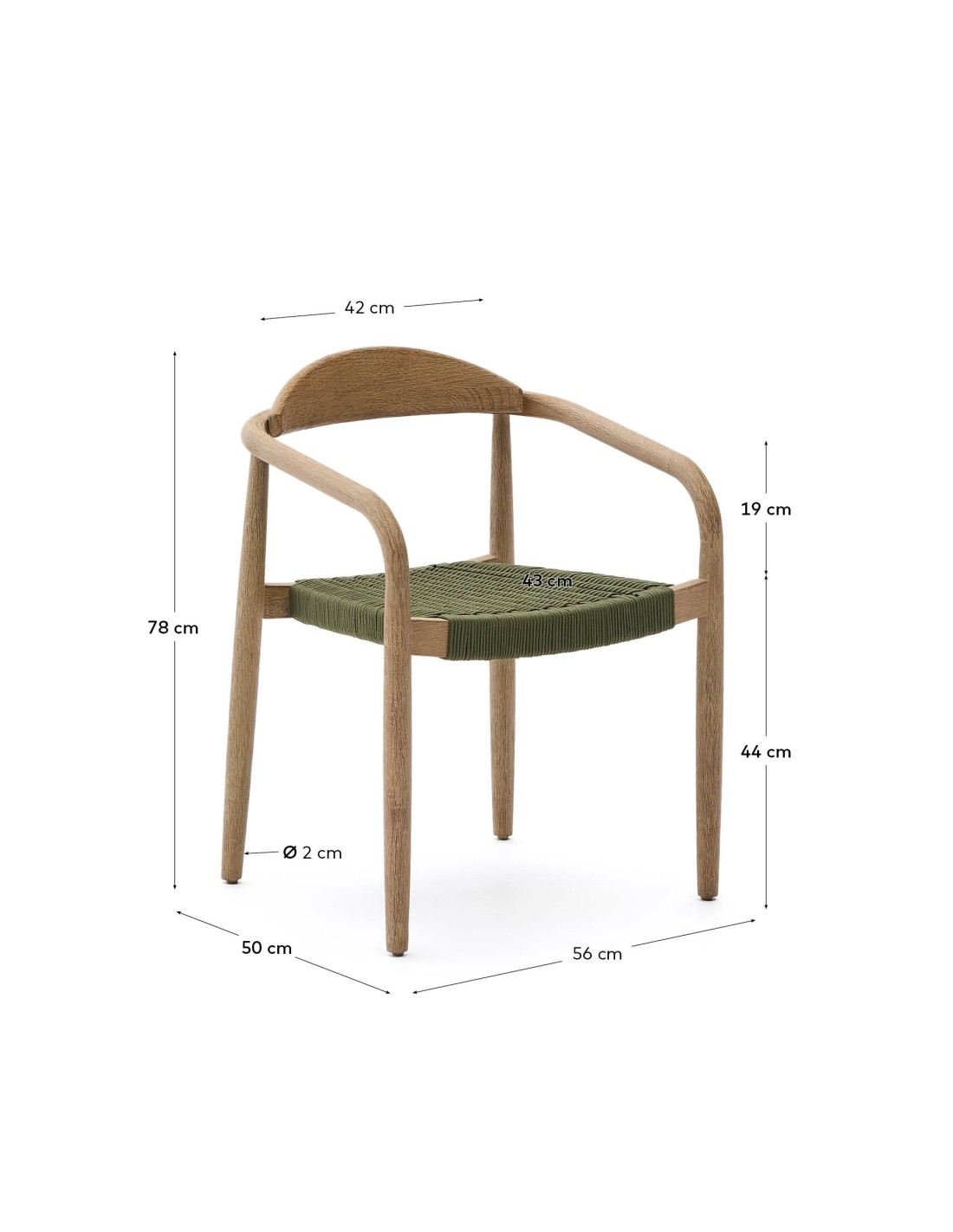 Silla apilable Nina de madera maciza de acacia y cuerda verde FSC 100% - Kave Home