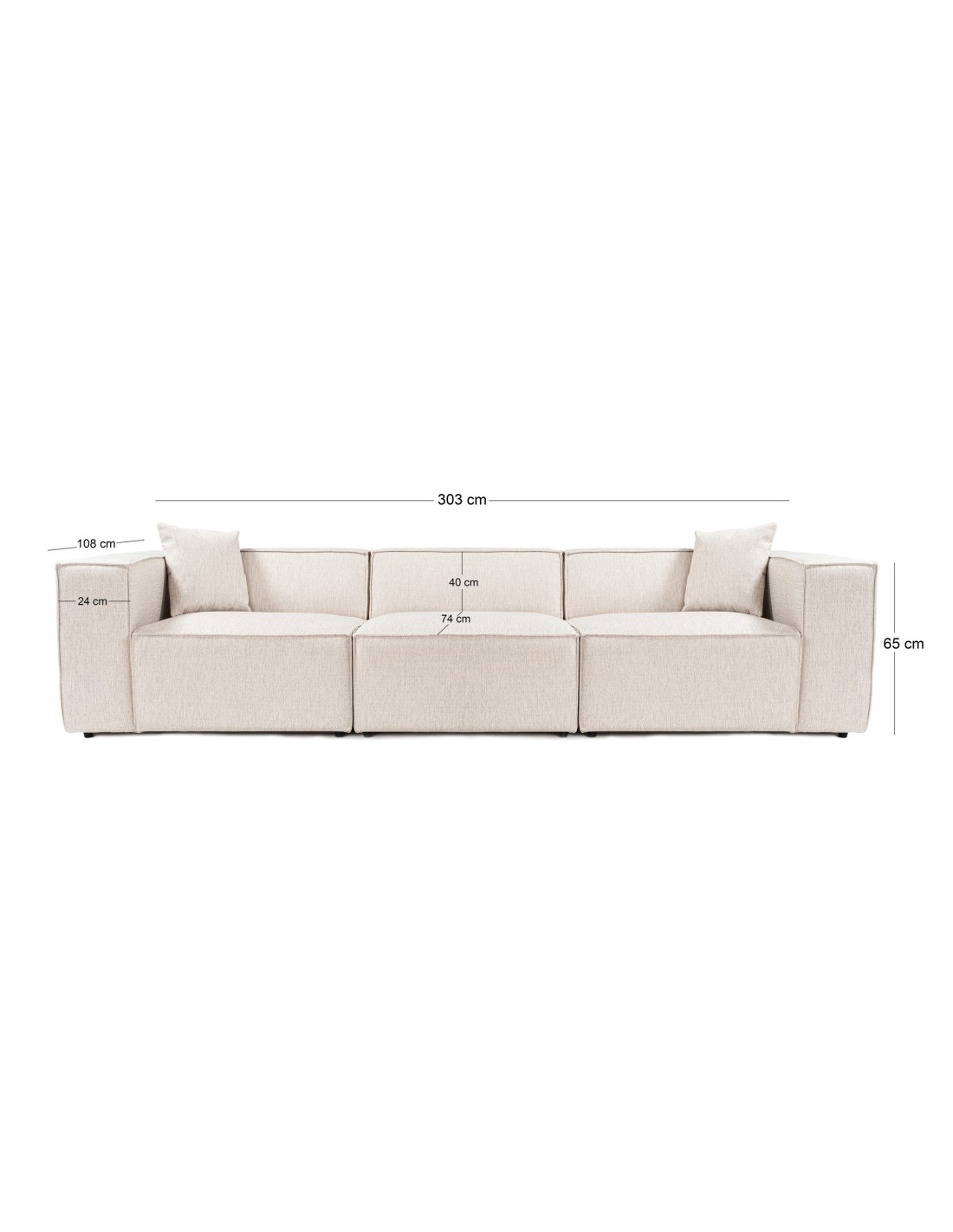 Sofá SOPHIE 3 Plazas 303x108 cm, Lino Marrón Claro