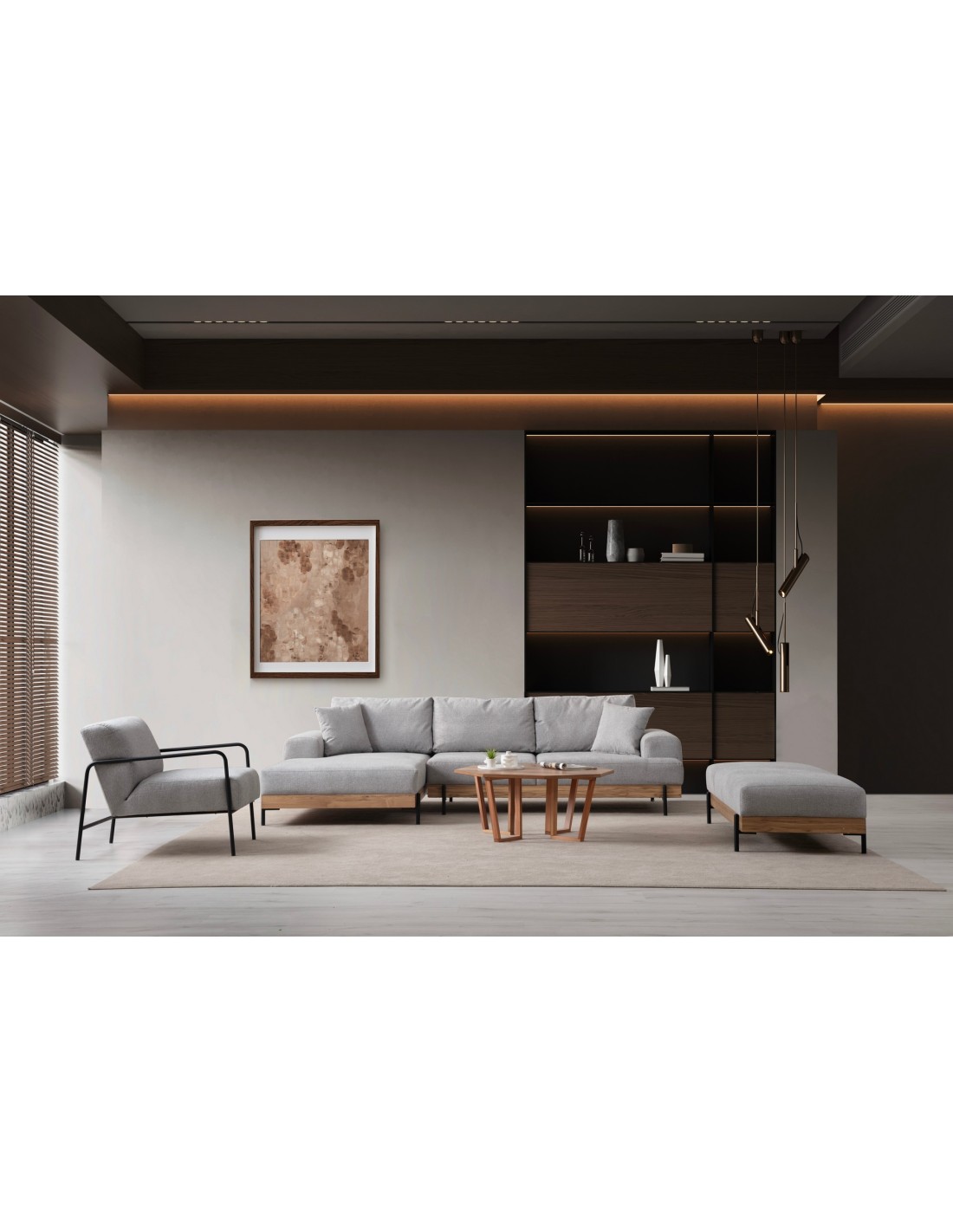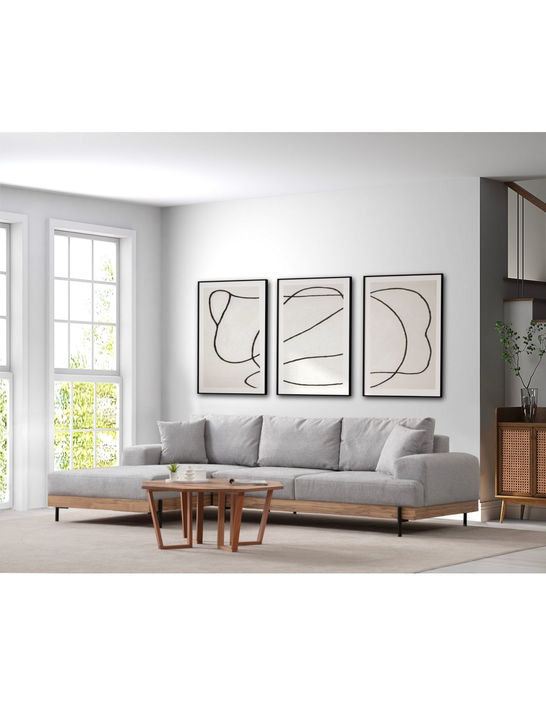 Sofá Esquinero FREI ROBLE (Izquierdo) 280x170 cm, Textil Gris / Madera de Haya / Metal