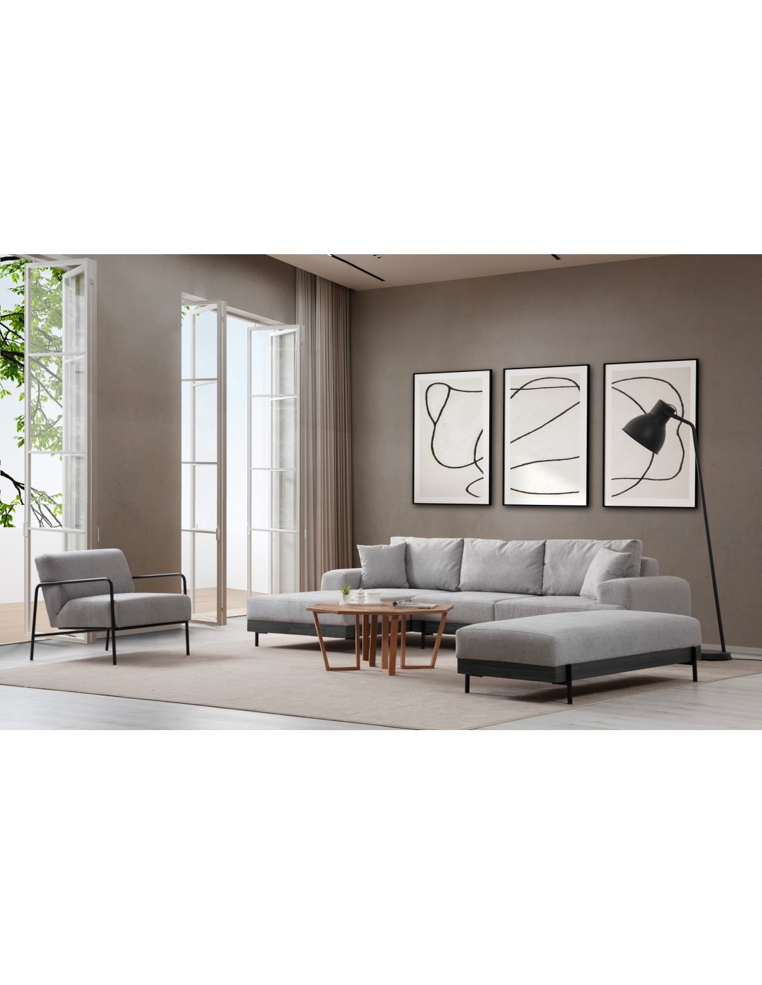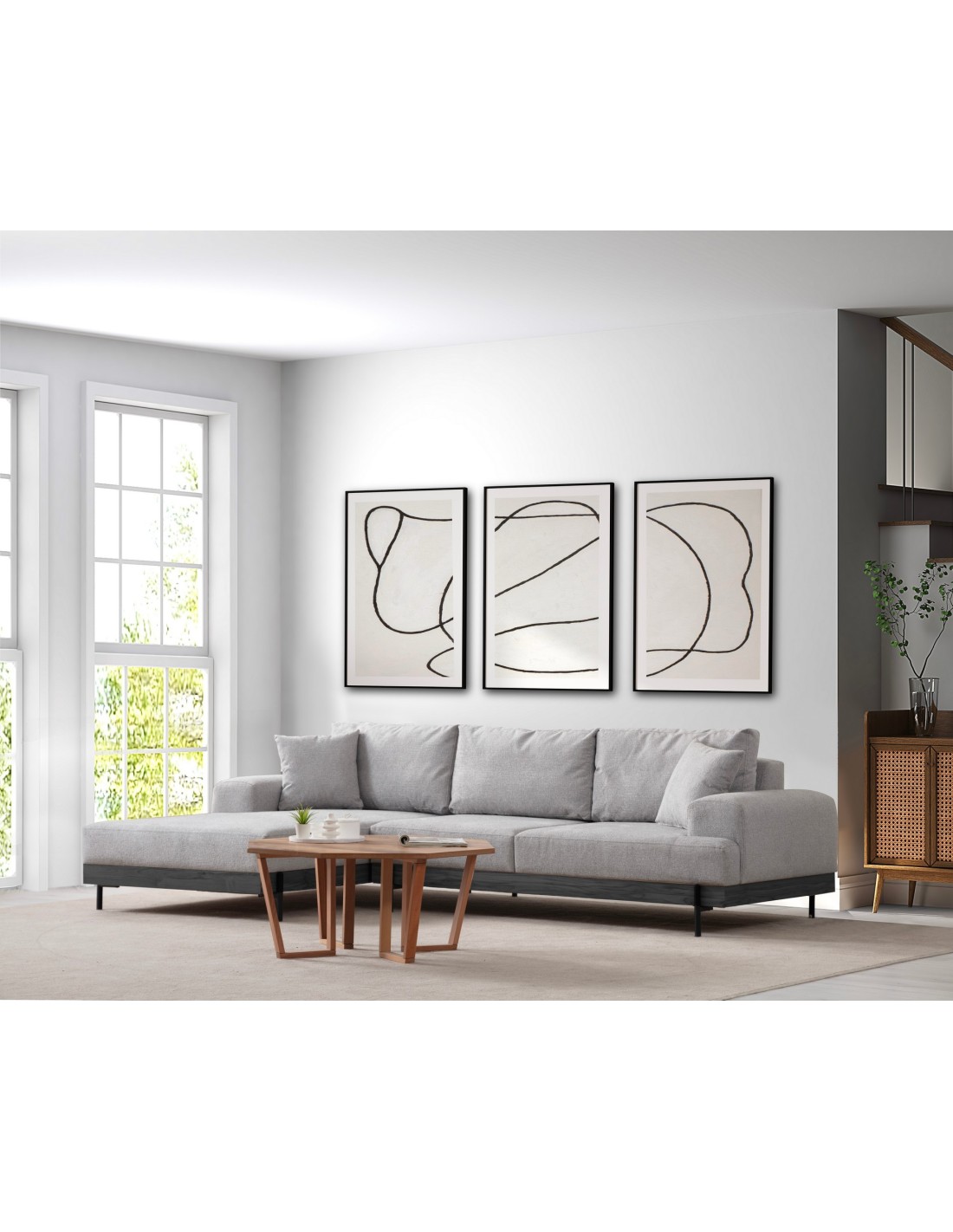 Transforma el ambiente de tu salón con el maravilloso sofá esquinero Frei. Una pieza exquisita, diseñada para añadir comodidad, estilo y elegancia a cualquier estancia.