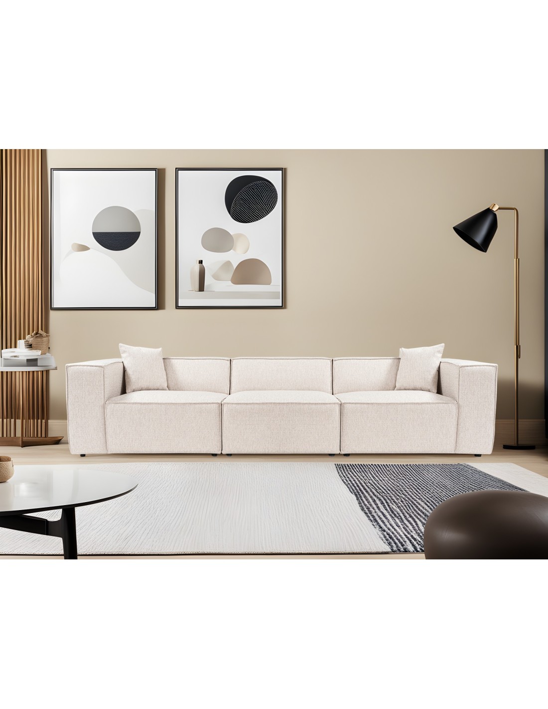 Sofá SOPHIE 3 Plazas 303x108 cm, Lino Marrón Claro