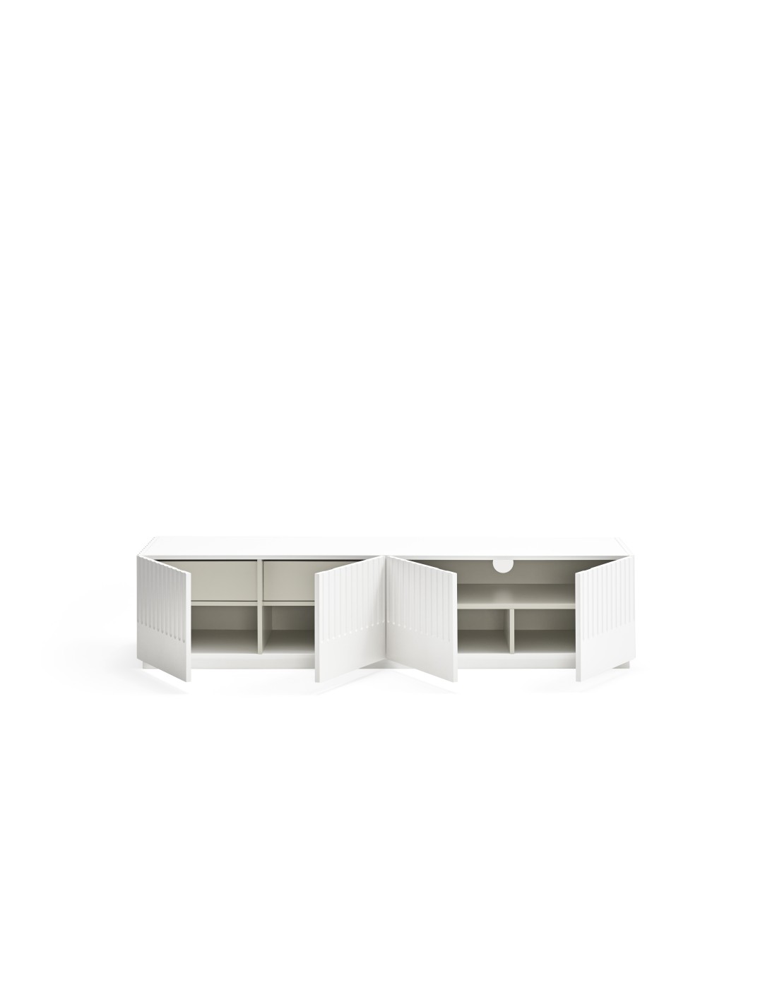 Mueble TV DORIC, 4 Puertas, 2 Cajones / Blanco / Interior Crema