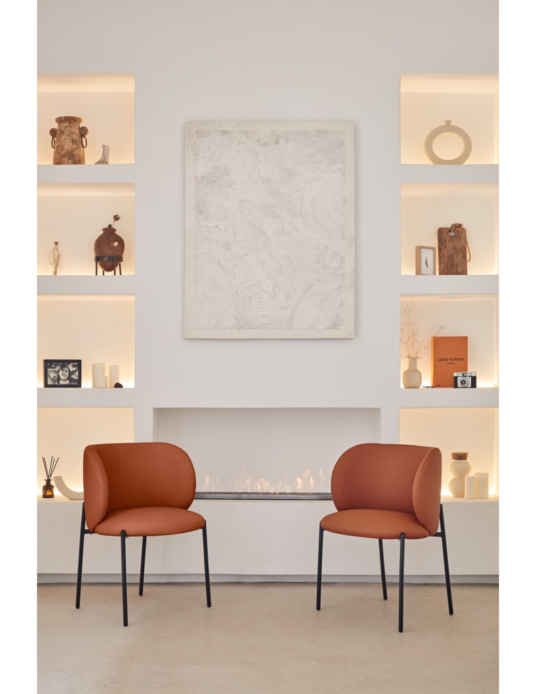 El nombre Mogi, que en coreano significa “mosquito”, da identidad a una silla elegante y de líneas atemporales. Su silueta envolvente invita a relajarse, ofreciendo una sensación de calma y confort. El respaldo, fabricado en contrachapado curvado y tapizado, se combina con unas patas de metal que aportan estabilidad y un toque contemporáneo.
