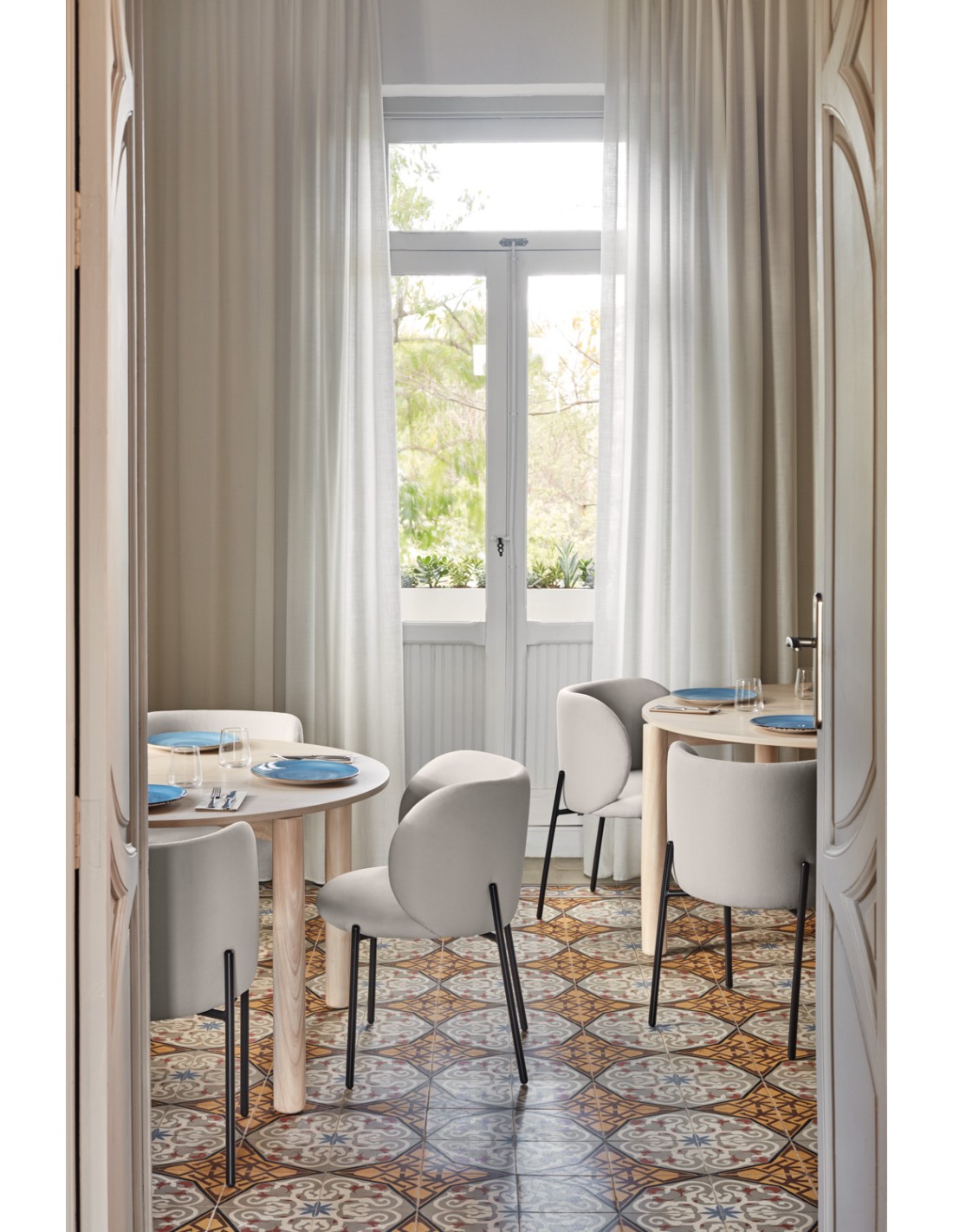 El nombre Mogi, que en coreano significa “mosquito”, da identidad a una silla elegante y de líneas atemporales. Su silueta envolvente invita a relajarse, ofreciendo una sensación de calma y confort. El respaldo, fabricado en contrachapado curvado y tapizado, se combina con unas patas de metal que aportan estabilidad y un toque contemporáneo.