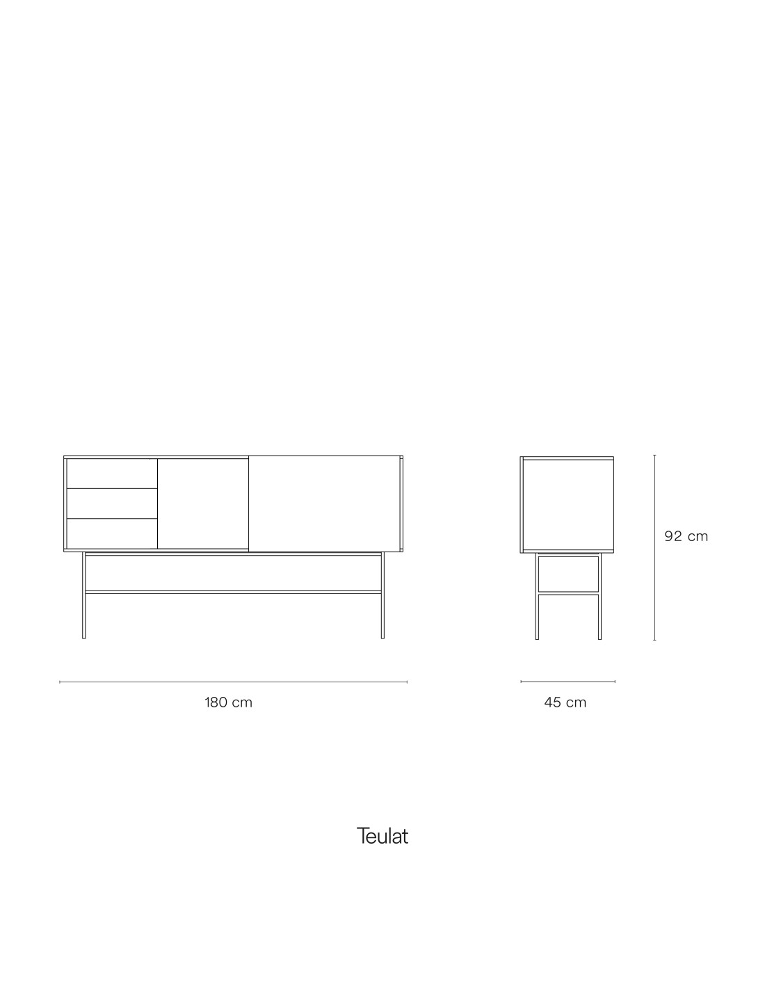 La colección Nube se caracteriza por su diseño original, marcado por una puerta corrediza que puede ubicarse a gusto de cada persona. Este mueble está fabricado en MDF lacado, con una puerta del mismo acabado que se desliza suavemente sobre la superficie. La estructura descansa sobre patas metálicas también lacadas, aportando estabilidad y un toque contemporáneo.
