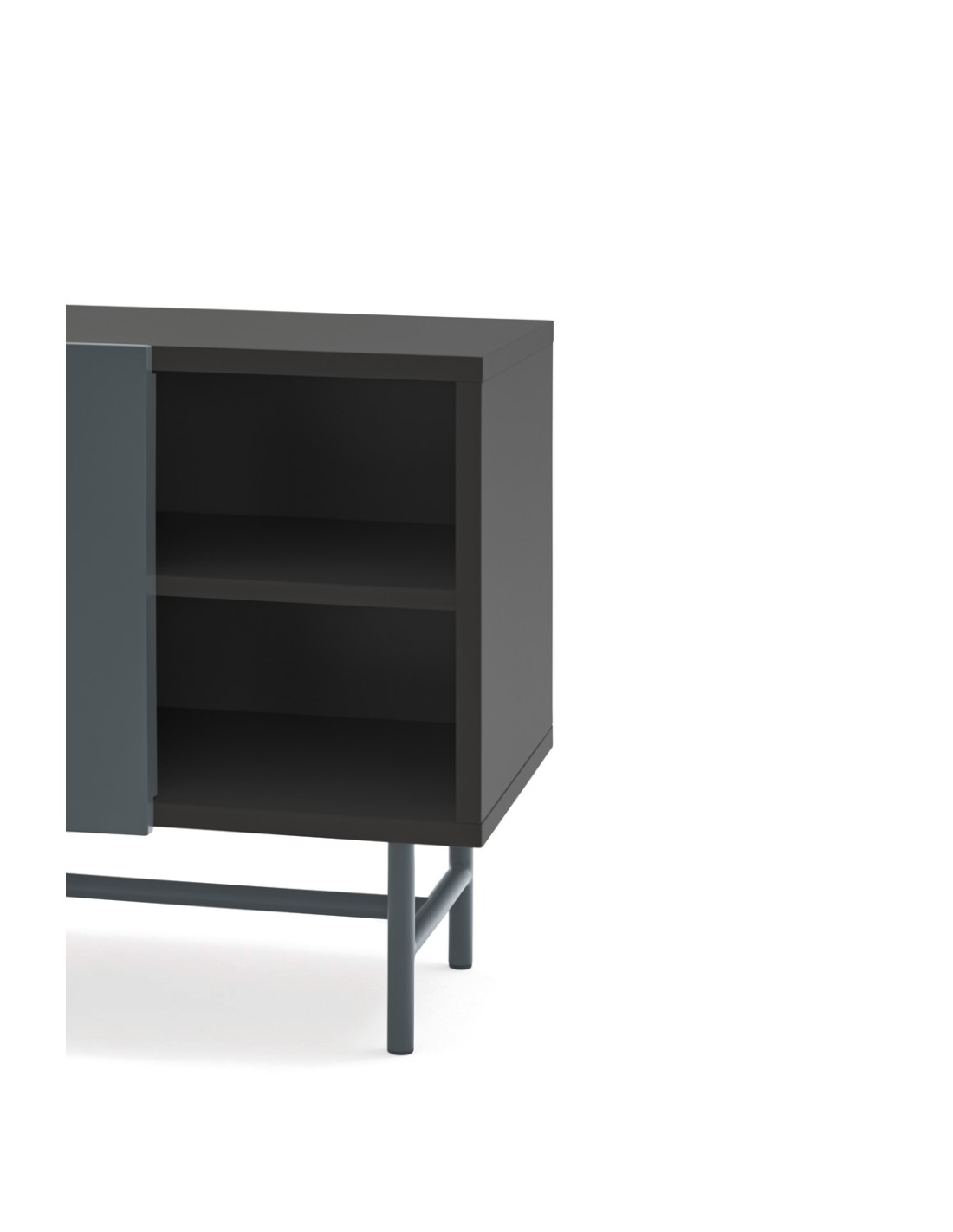 La colección Nube se caracteriza por su diseño original, marcado por una puerta corrediza que puede ubicarse a gusto de cada persona. Este mueble está fabricado en MDF lacado, con una puerta del mismo acabado que se desliza suavemente sobre la superficie. La estructura descansa sobre patas metálicas también lacadas, aportando estabilidad y un toque contemporáneo.