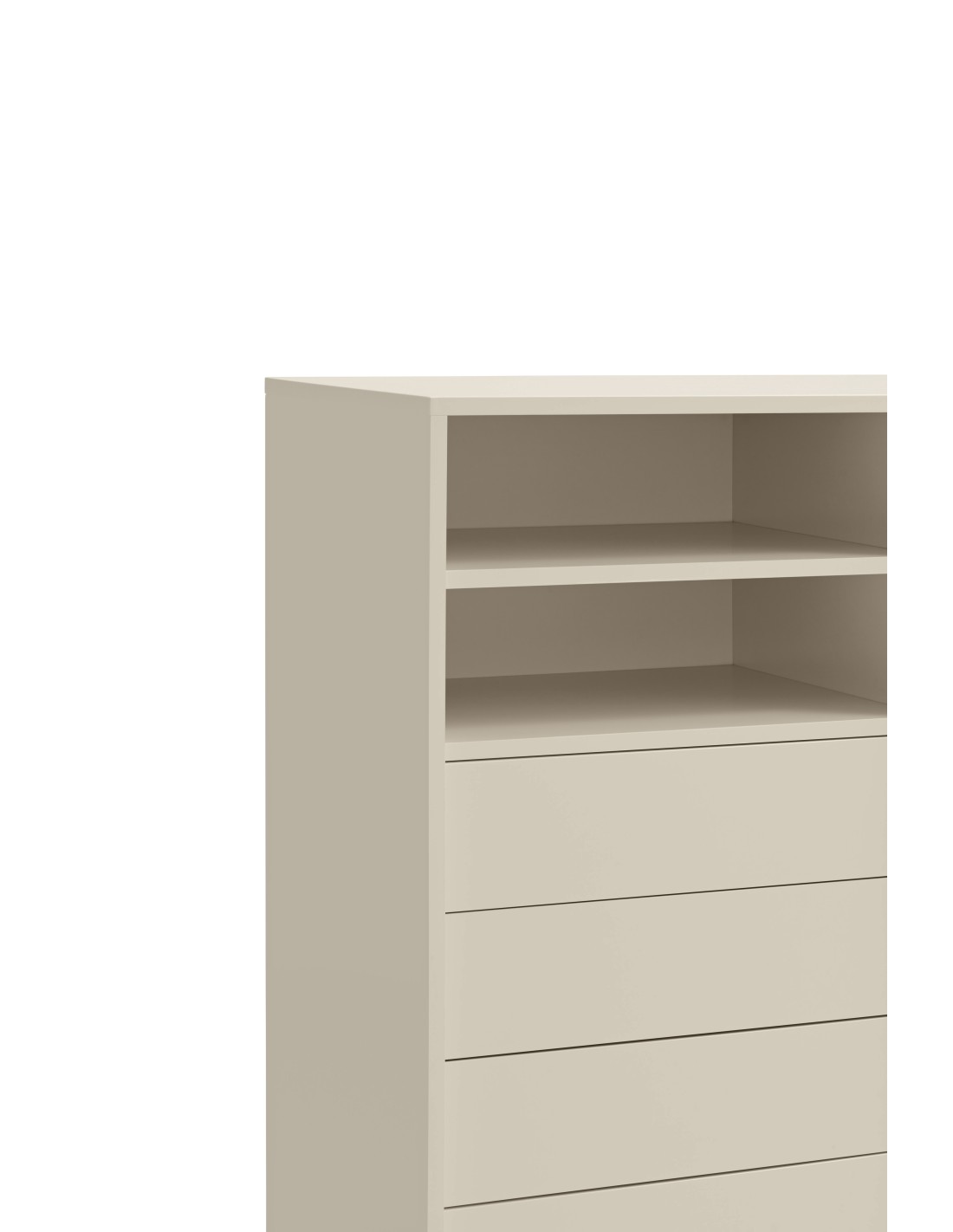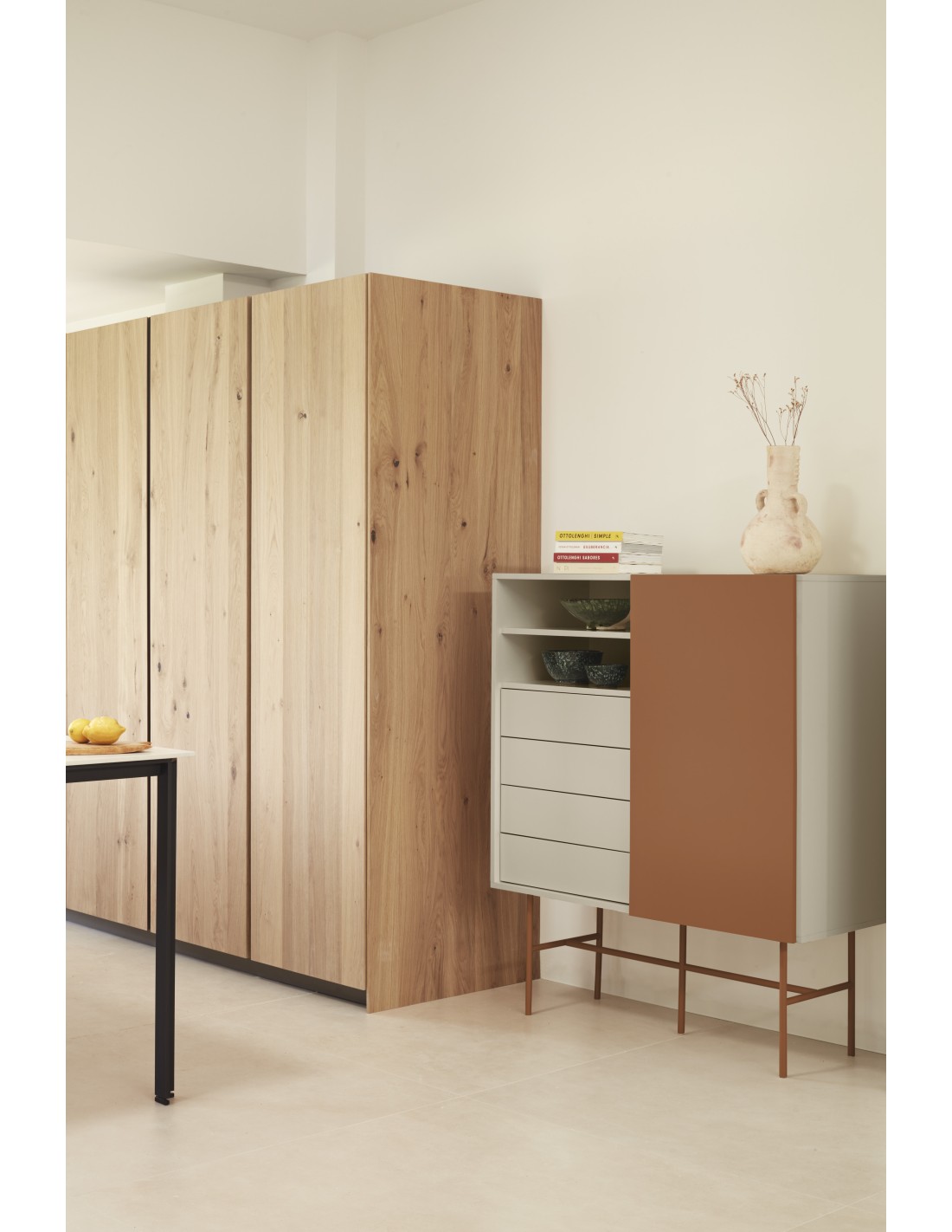 Aparador alto NUBE, 4 cajones + 1 puerta corrediza, arena / arcilla - Teulat.